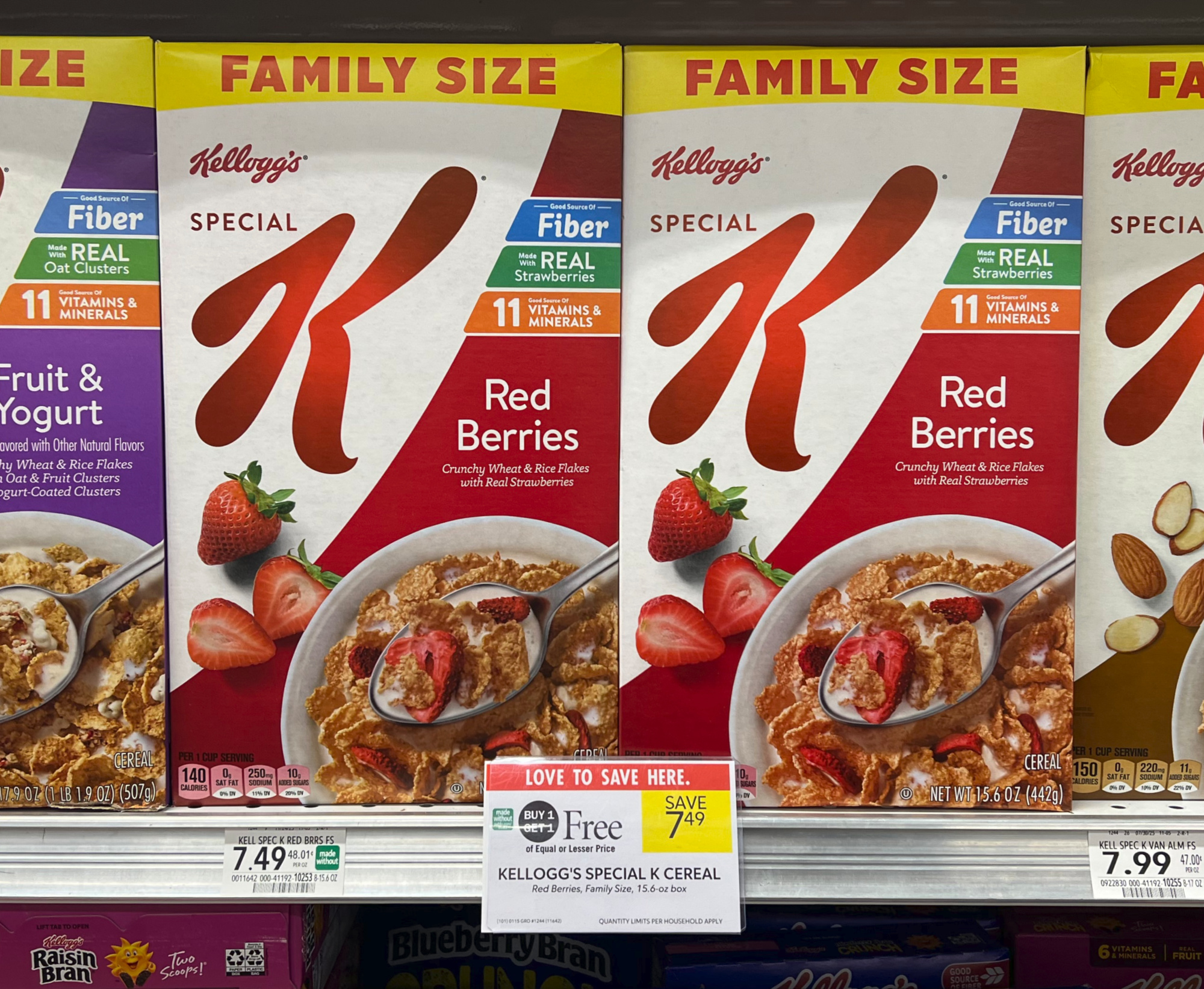 Kellogg’s Special K Cereal, Family Size, 15.6 to 18 oz box, BOGO $7.49 – $7.99