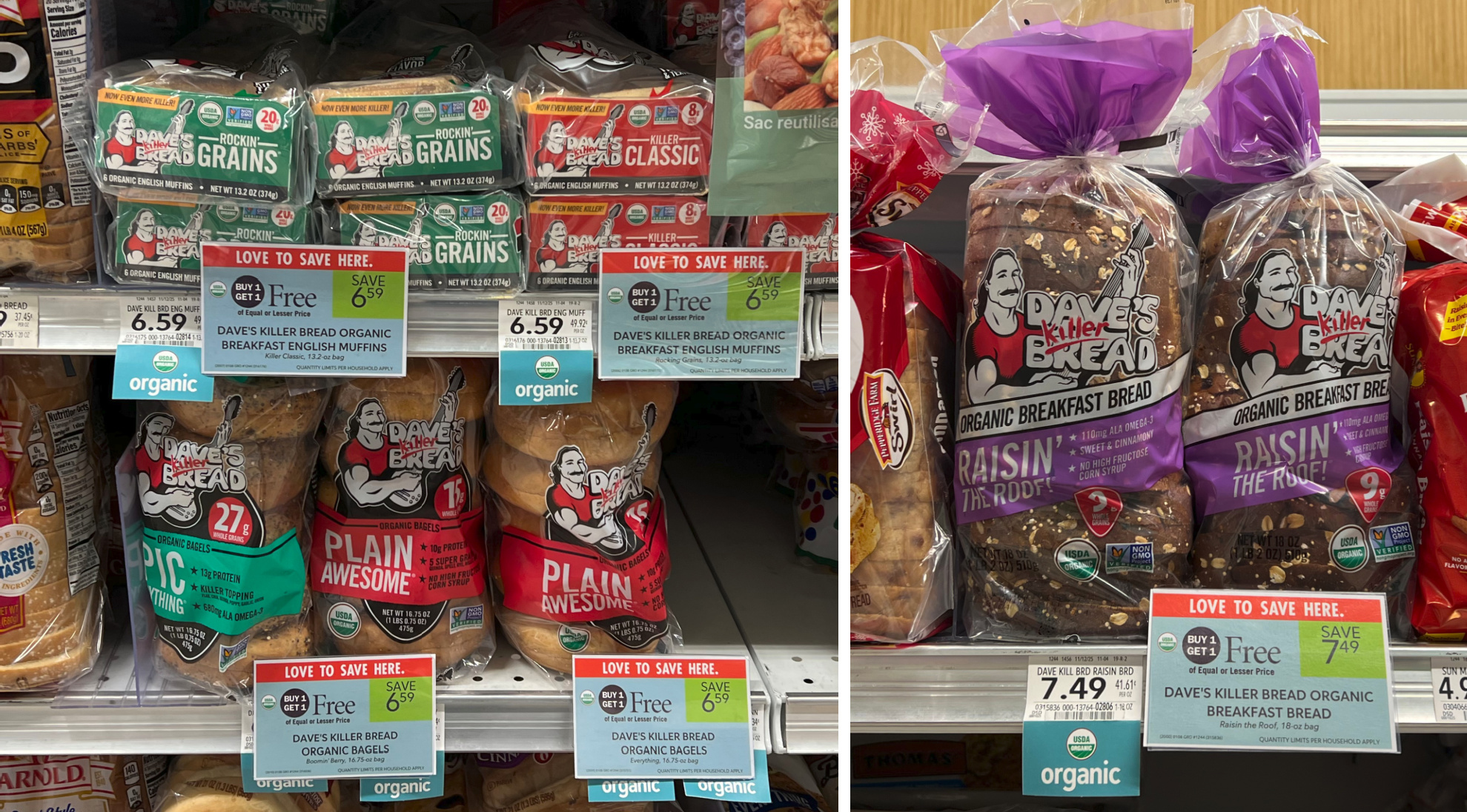 Dave’s Killer Bread Organic Bagels, 16.75 oz; or Breakfast Bread, 18 oz, English Muffins, 13.2 oz, BOGO $6.59 – $7.49