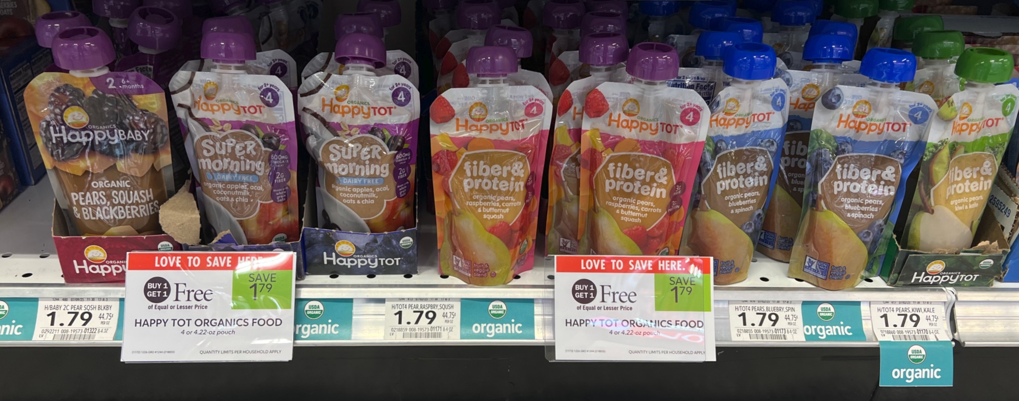 Happy Tot, or Happy Baby Organics Food, 3.5 to 4.22 oz pouch, BOGO $1.79
