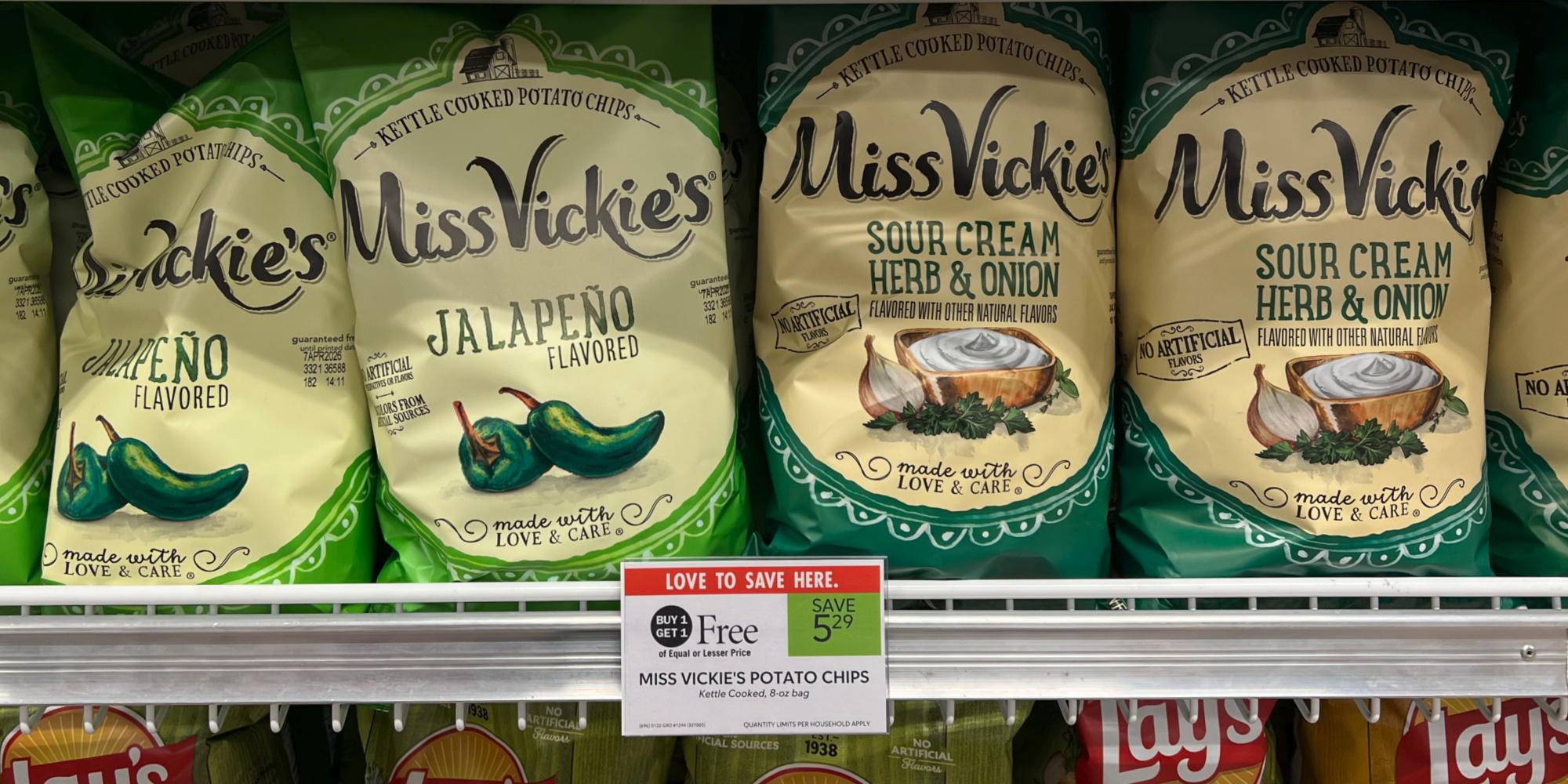 Head over to Publix for a deal on Miss Vickie’s Kettle Cooked Potato Chips. Right now the bags are BOGO with a cash back offer to pair up. After discounts, you pay just $1.75 per bag.
