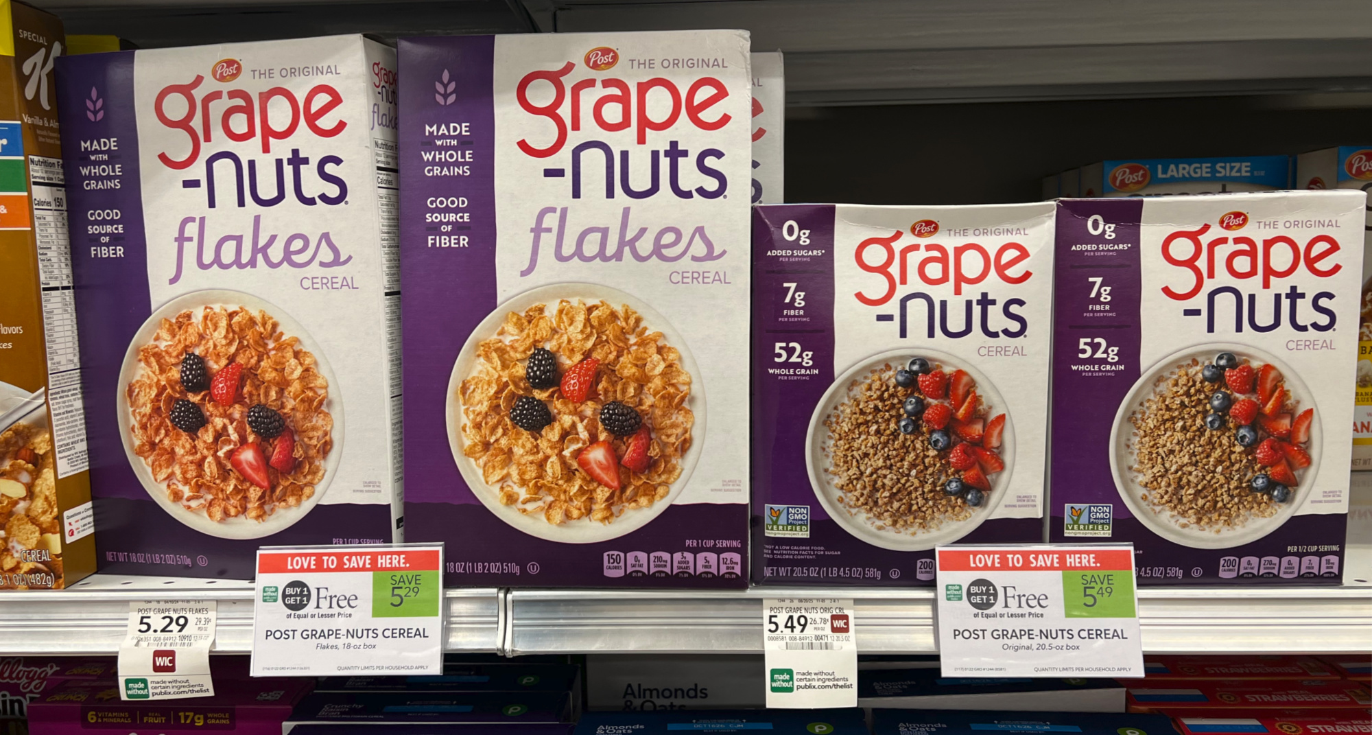 Combine the cash back offer and BOGO sale to get Post Grape-Nuts Cereal for as little as $1.40 per box at Publix.