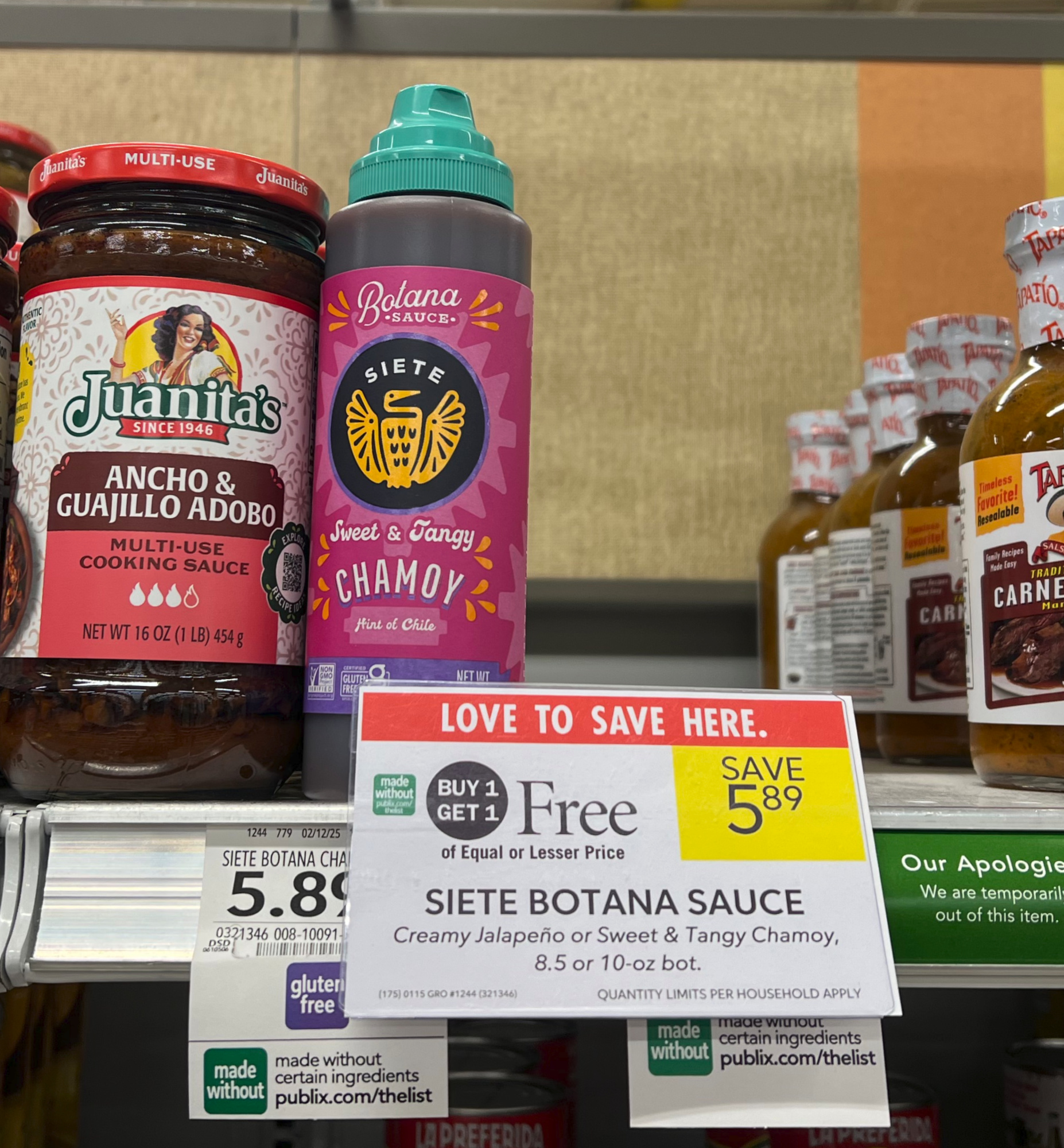 Head over to Publix for a deal on Siete Botana Sauce. Combine the sale and cash back offer to pick up the bottles for just $1.45 each.