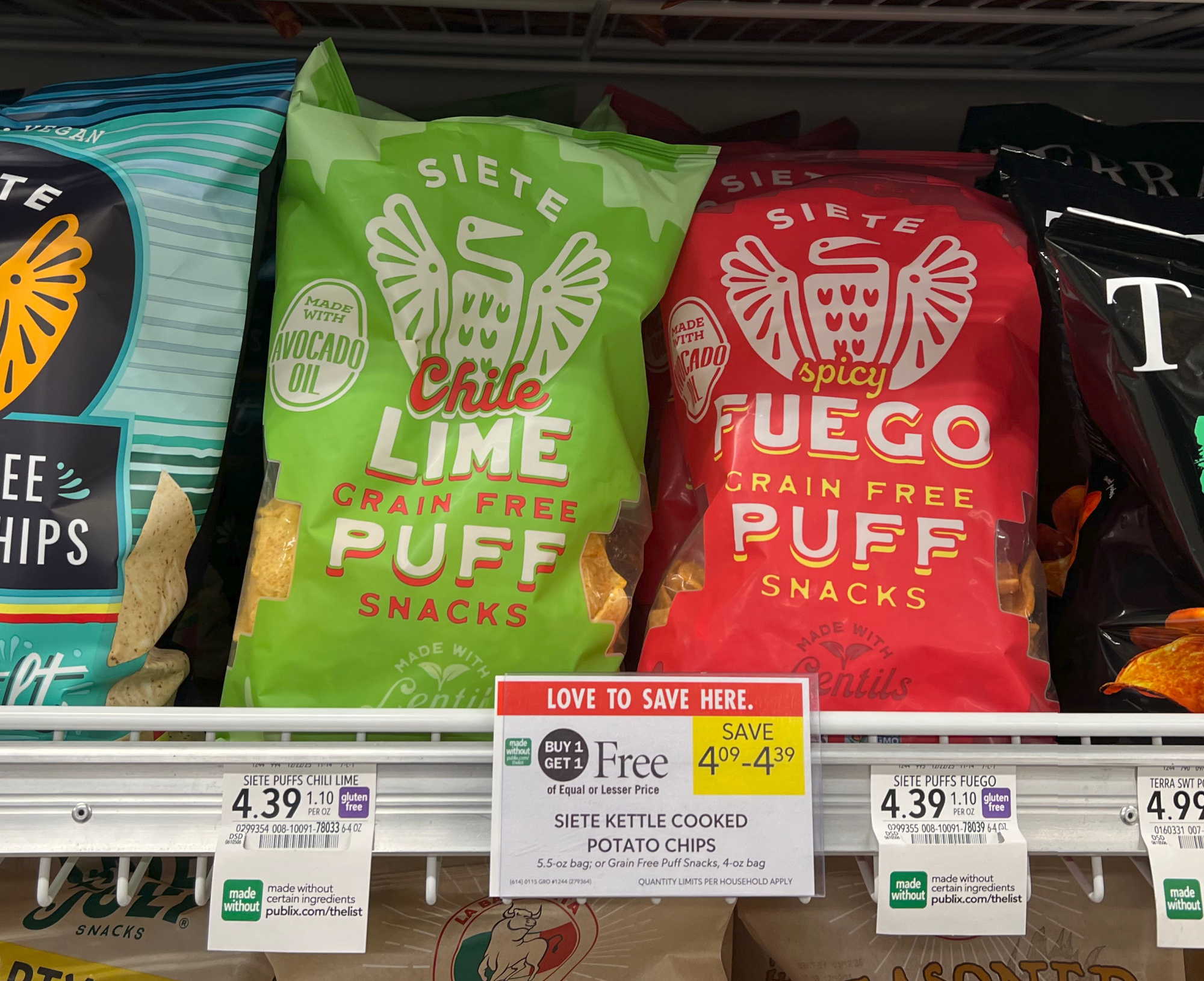When you combine the cash back offer and BOGO sale you can get Siete Grain Free Puff Snacks for as little as $1.45 per bag. Pick up your faves and save now at Publix.