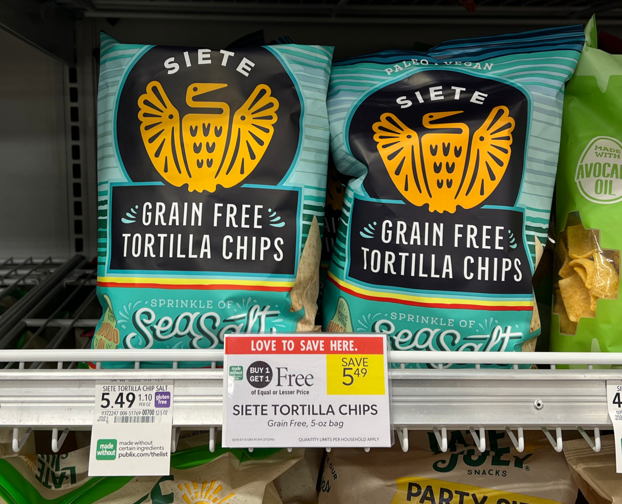 If you are a fan of Siete products, you might want to unlock the cash back offer to pick up a great discount at Publix. After discounts you pay just $2.12 for the Grain Free Tortilla Chips.