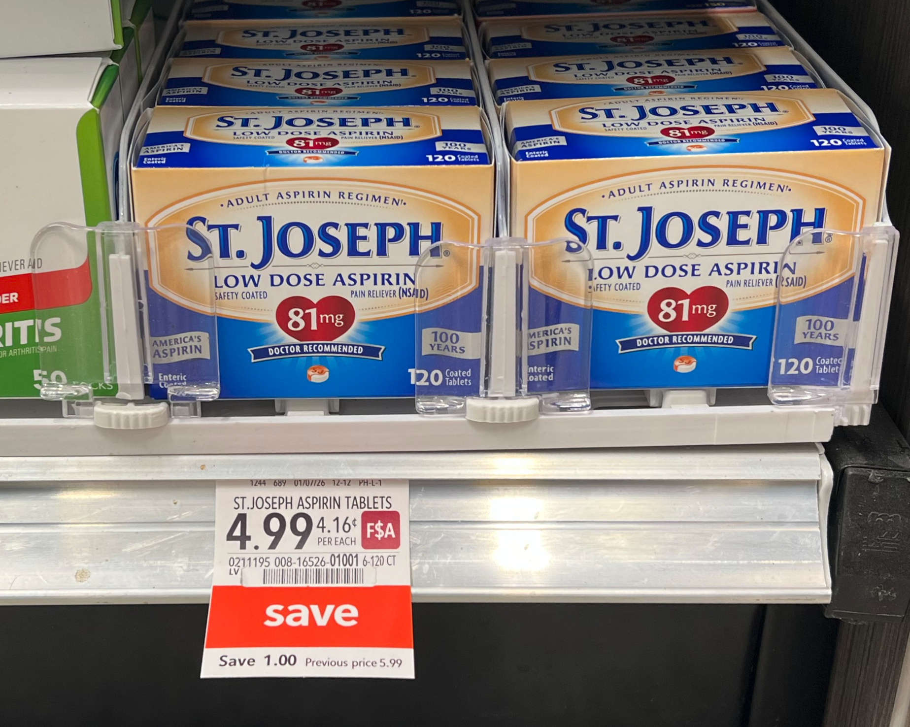 St. Joseph Low Dose Aspirin, 120 ct, $4.99 (reg $5.99)