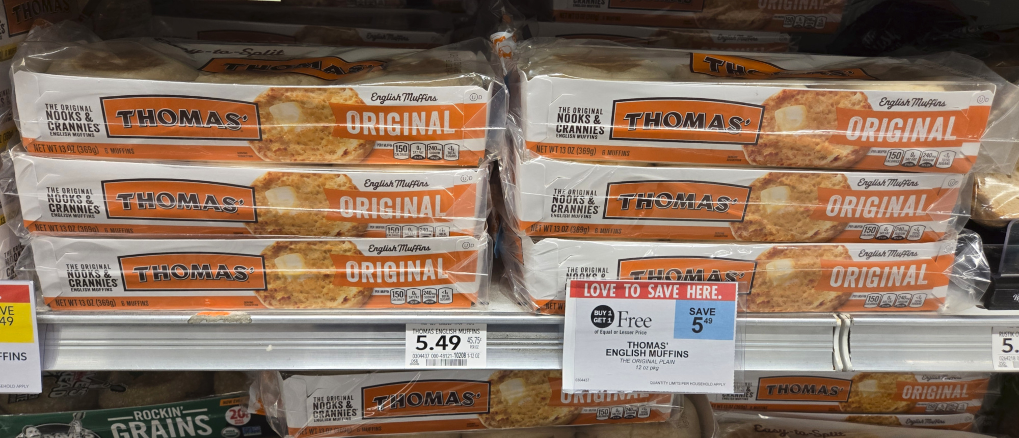 Thomas’ English Muffins, 12 or 13 oz, BOGO $5.49