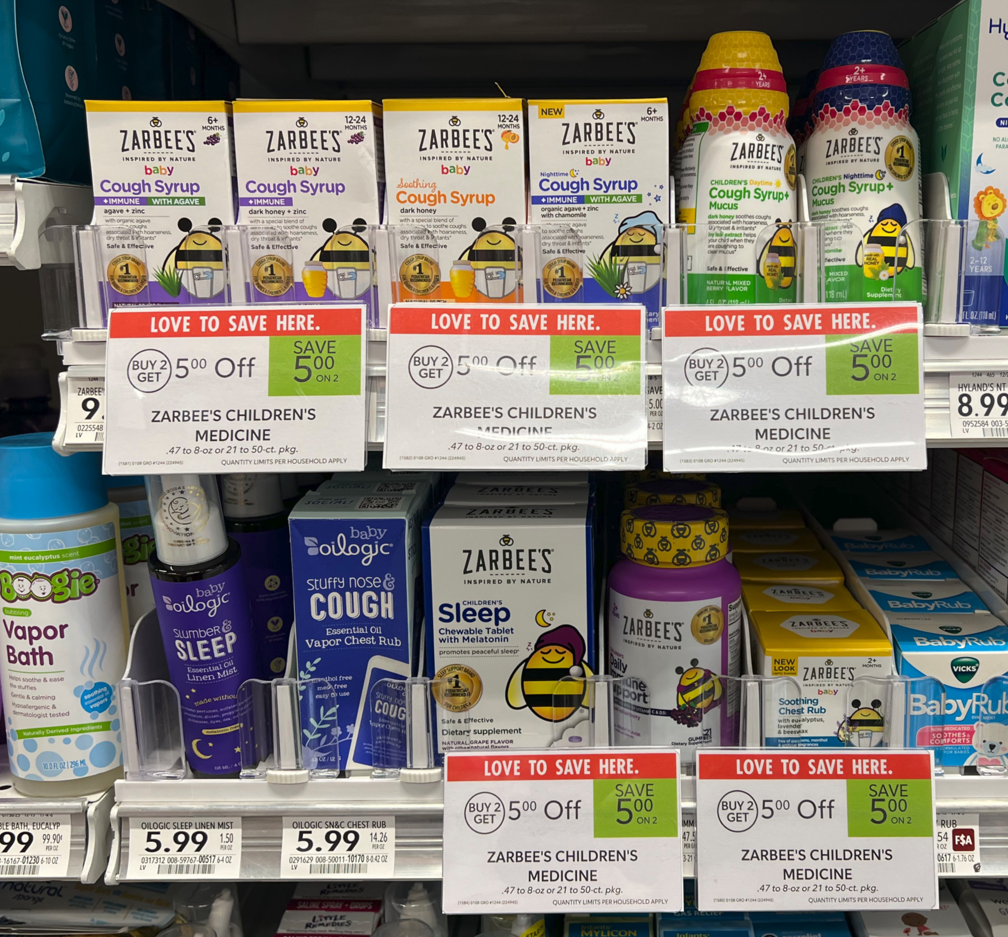 Zarbee’s, 0.47 to 8 oz, or 21 to 50 ct, $5 Off wyb 2, $7.39+