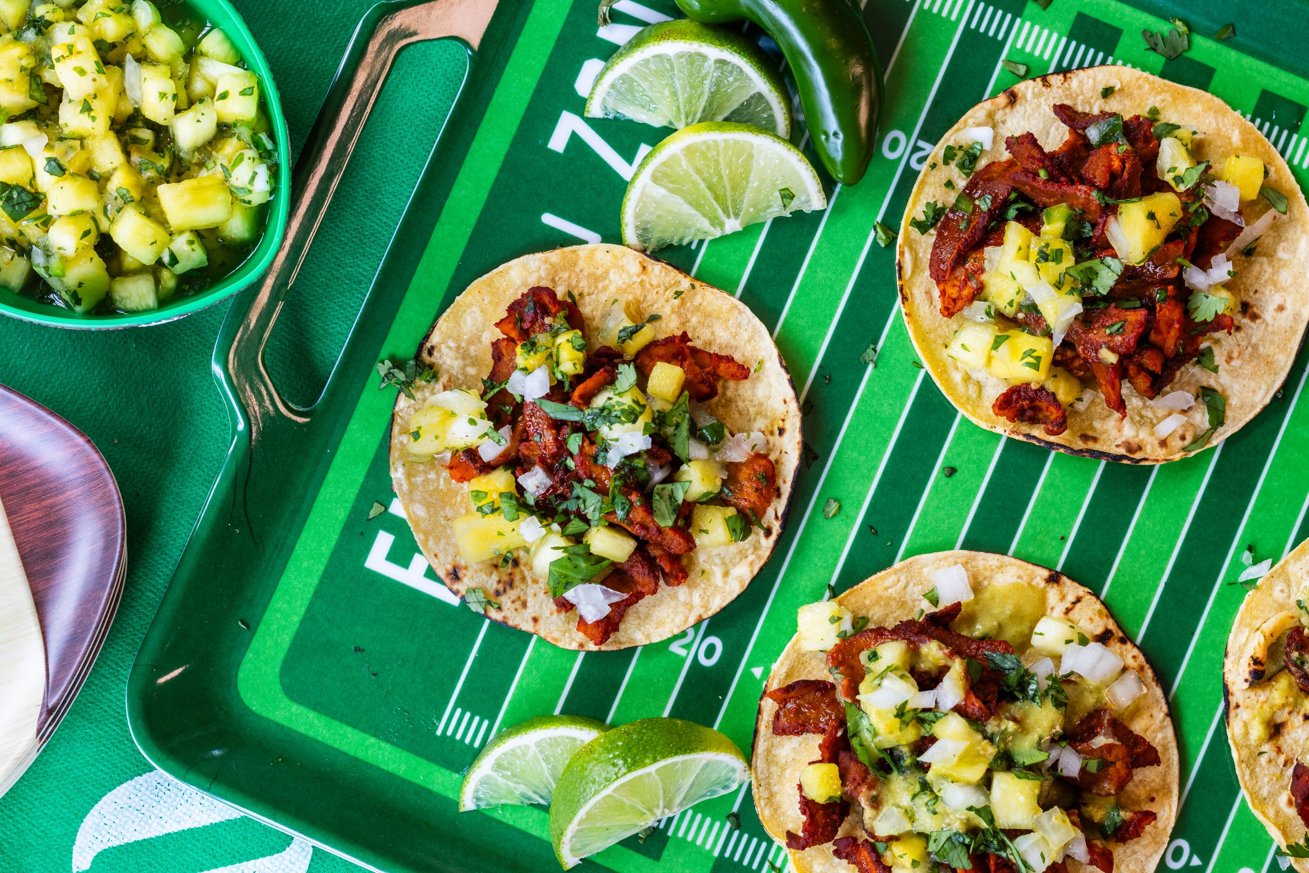 - Pile the savory pork onto the tortillas and top with the pineapple salsa, a sprinkle of onion, and plenty of cilantro.