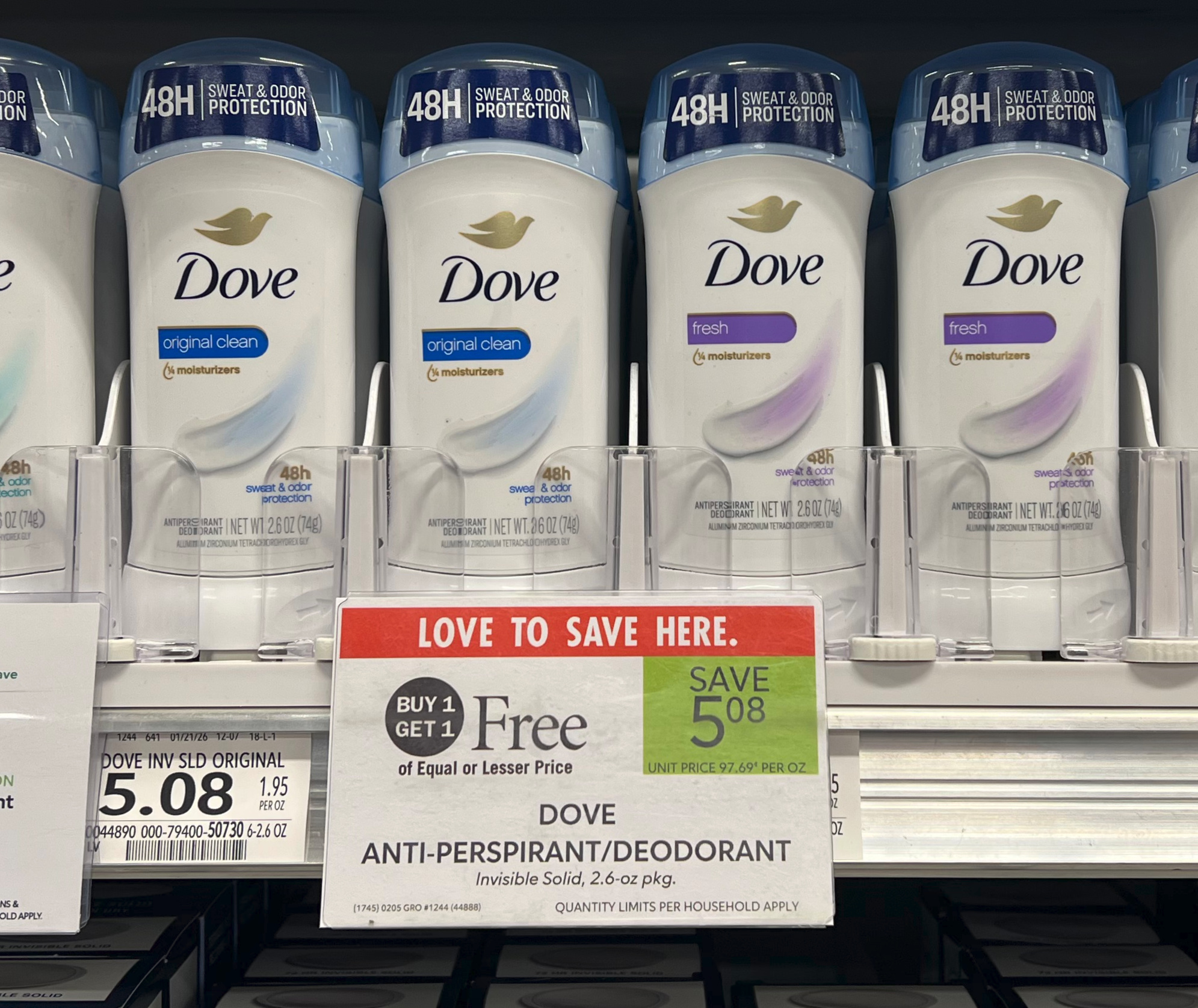 We have a very nice deal on Dove Deodorant available this week at Publix. Clip that digital coupon and grab deodorant for as little as 87¢ each the next time you shop.