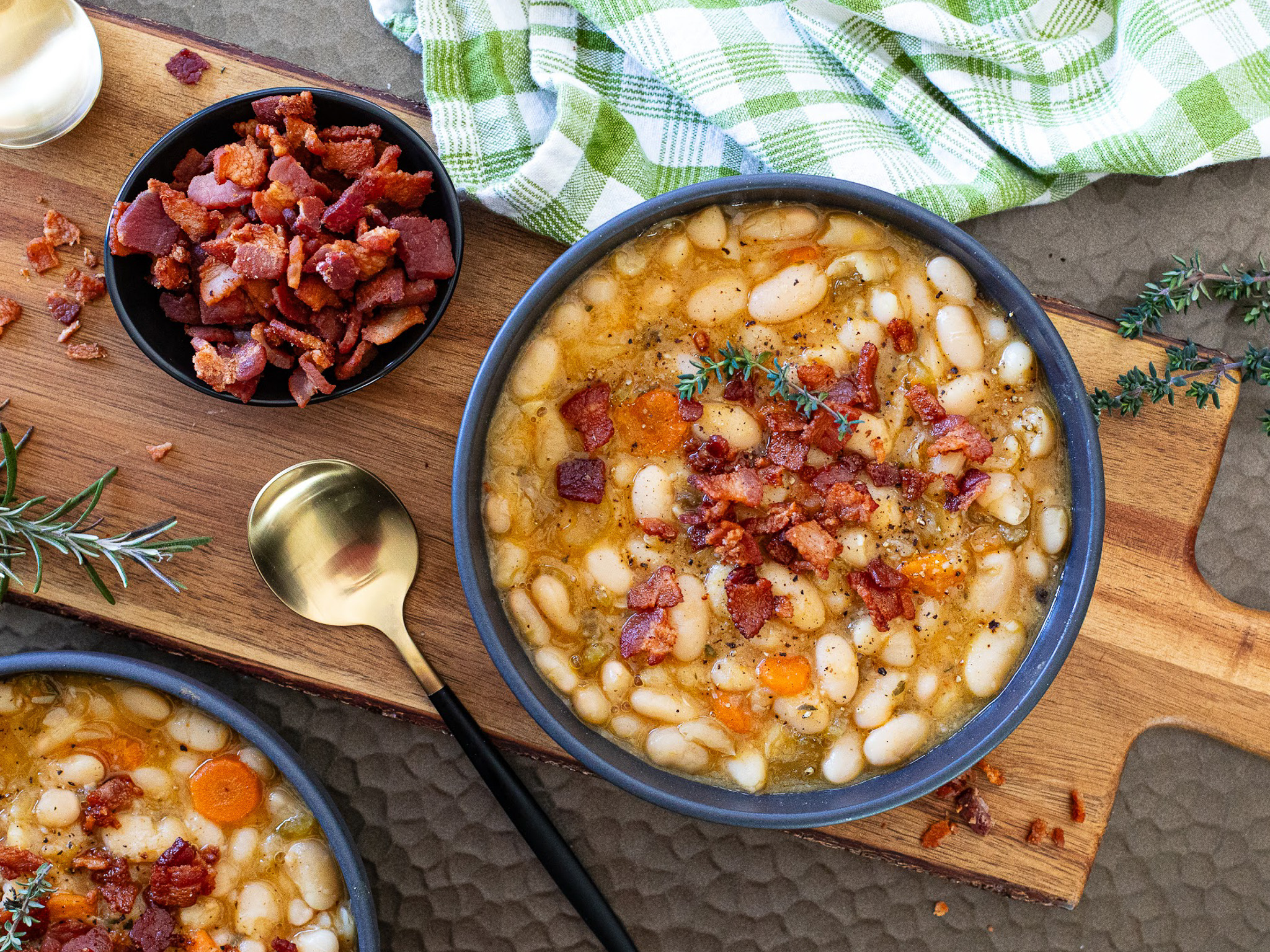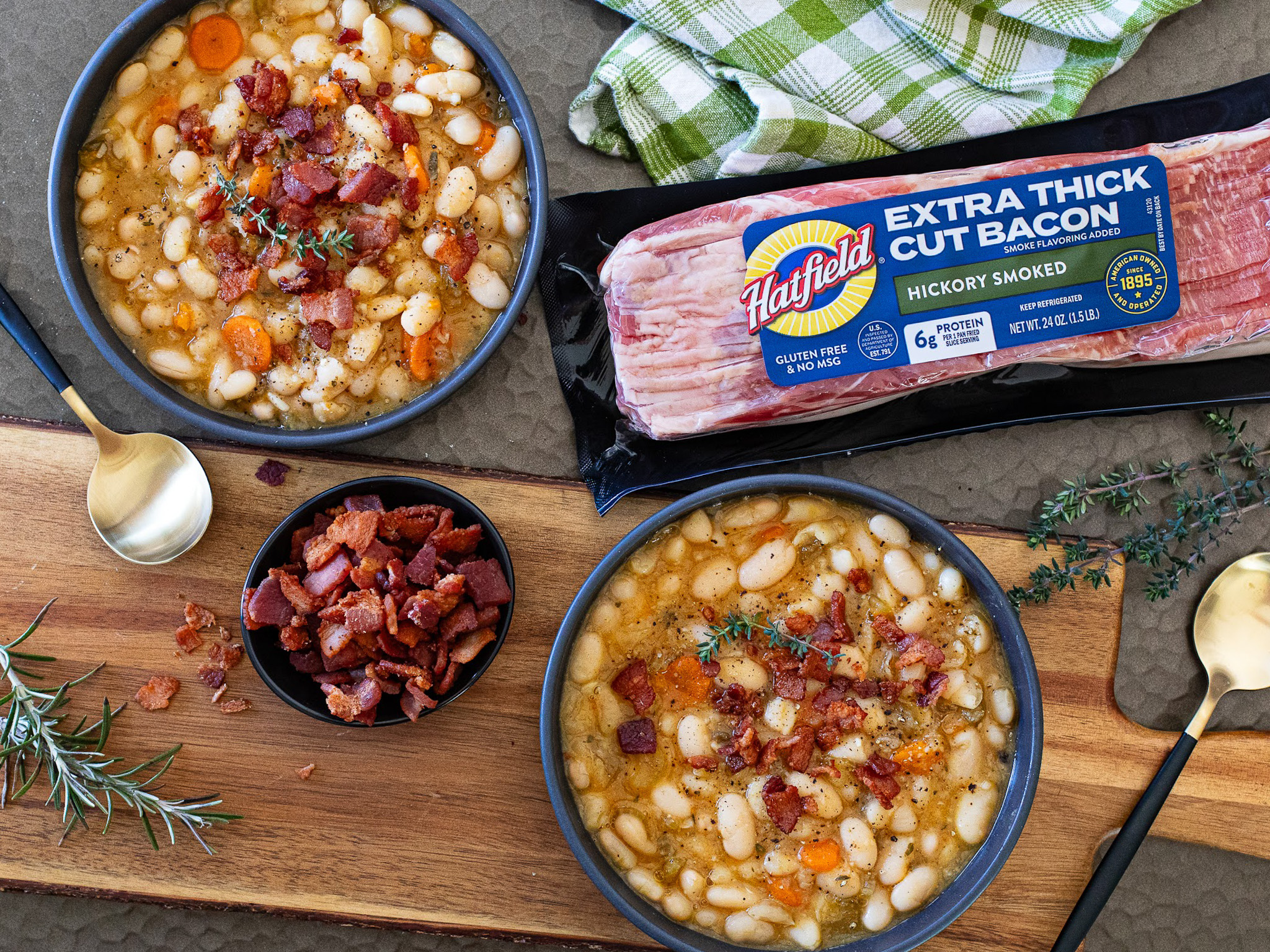 When it’s cold out, I crave hearty comfort foods. And, there is nothing quite like a warm bowl of soup to end the day when the temps are low. This White Bean & Bacon Soup uses Hatfield smoky bacon to create a rich, savory base that tastes like you spent all day in the kitchen… but, I promise, you won’t have to spend more than a few minutes to get this one going!