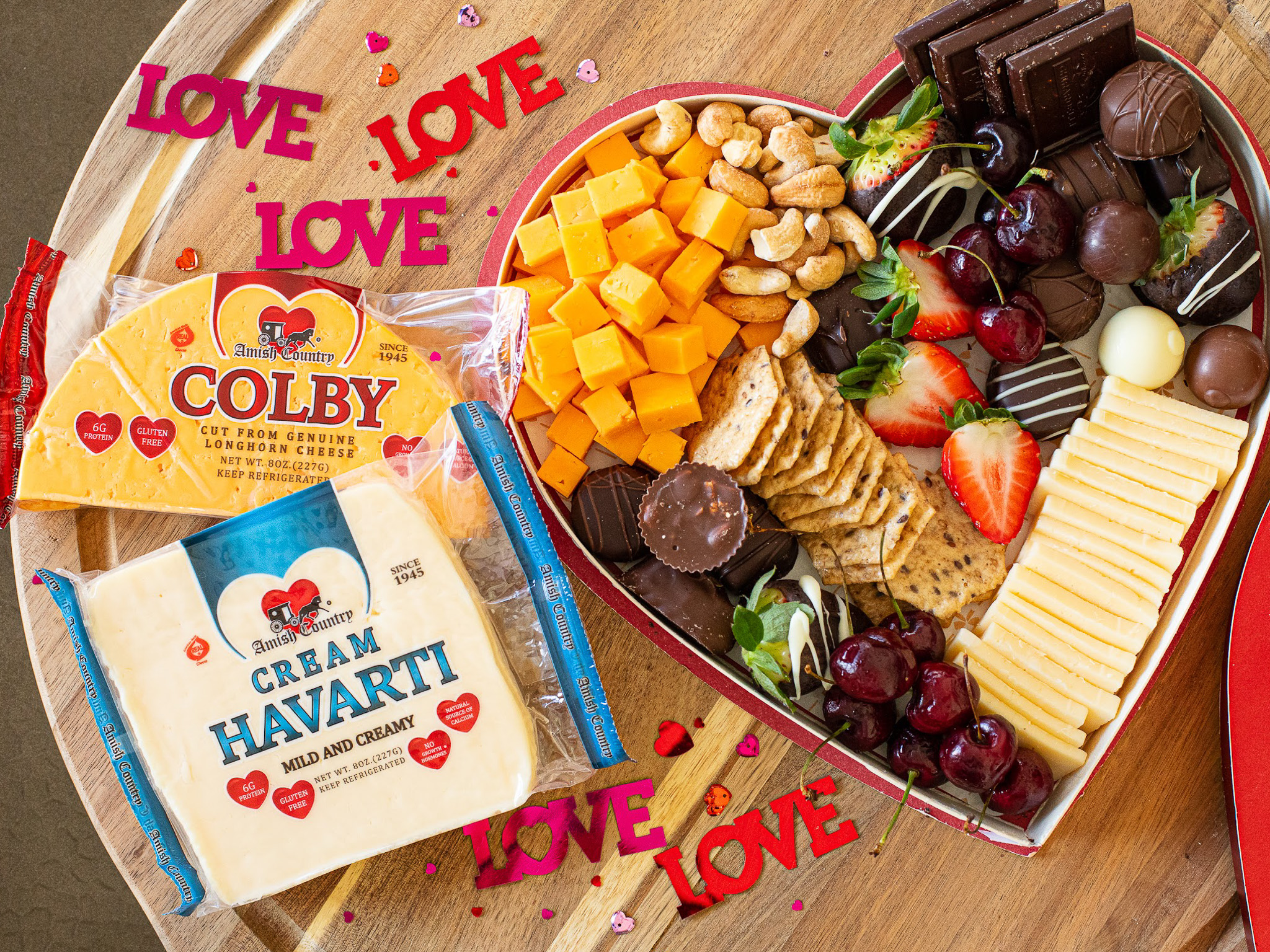 Start with the ultimate Valentine’s duo… Amish Country Cheese and artisan chocolate. Whether you’re planning a cozy night in or a Galentine’s gathering, these pairings prove that opposites really do attract.