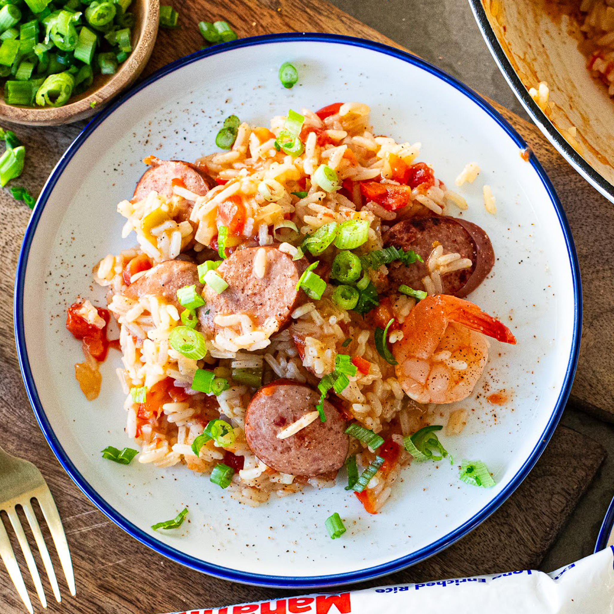 To put that sale to good use, I’m sharing one of my go-to recipes—my Skillet Sausage and Shrimp Jambalaya. It’s the ultimate quick and hearty meal that brings bold flavors to your table without keeping you stuck in the kitchen all night. It’s warm, comforting, and simple enough for any weeknight.