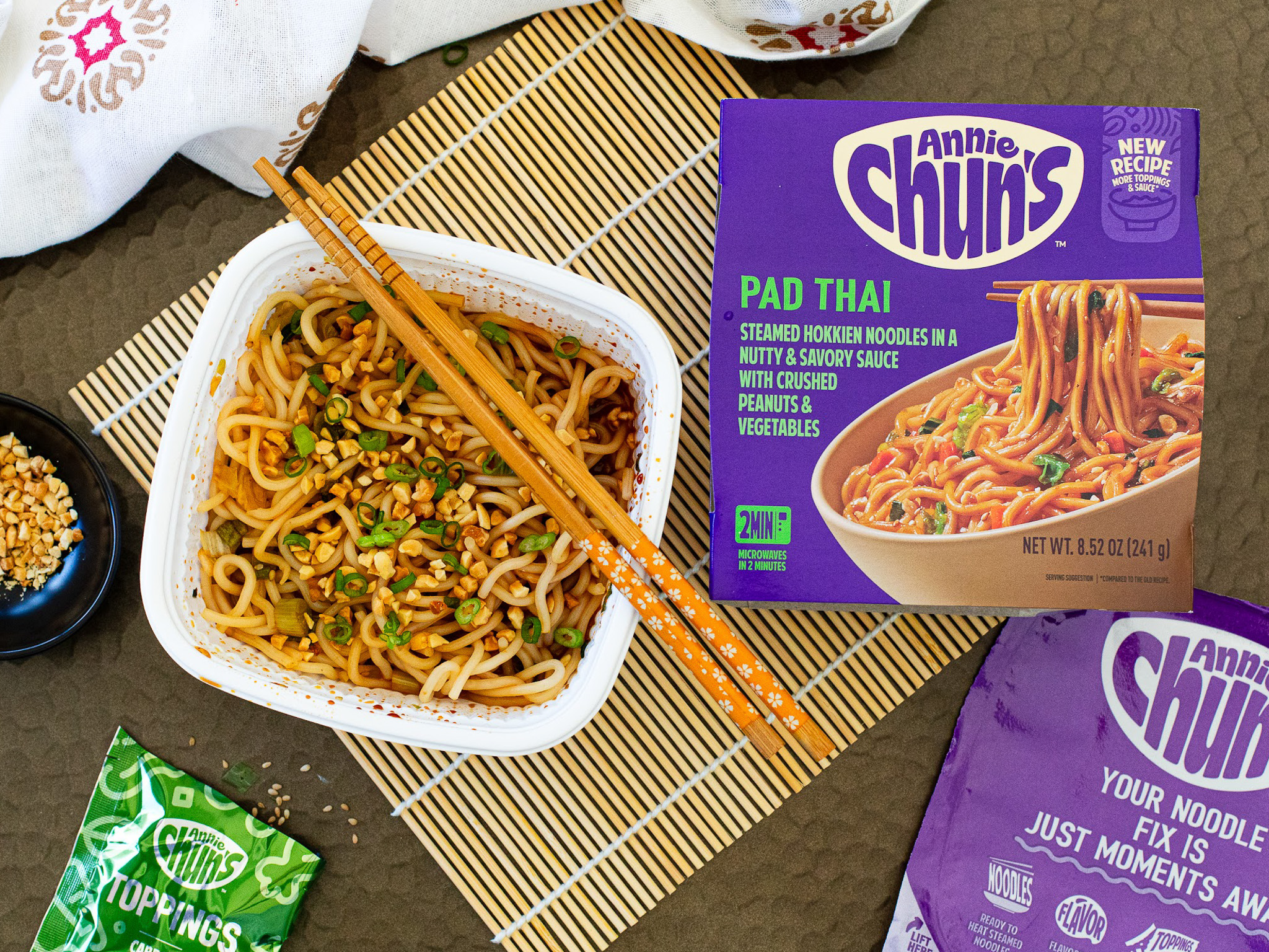 Get ready to experience true Thai flavor fusion. Our spin on this classic contains the perfect balance of sweet and tangy goodness with tender Hokkien noodles. Peanuts, garlic and sesame seeds add complex yet dazzling flavors that promise a little piece of Pad Thai heaven, right at home.
