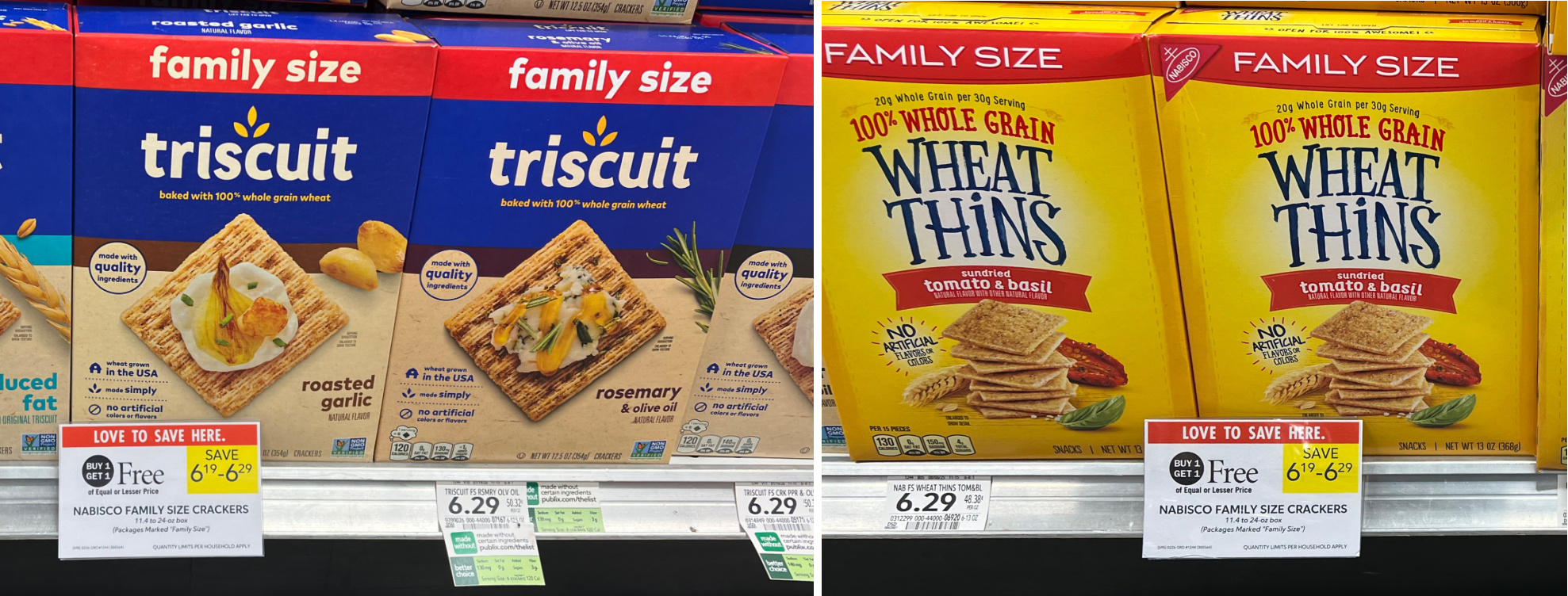 Need some crackers for your charcuterie boards? Load up on Triscuit and Wheat Thins Crackers and save with the sale and cash back combo. After all discounts you can get the family size boxes for just $2.15 at Publix.