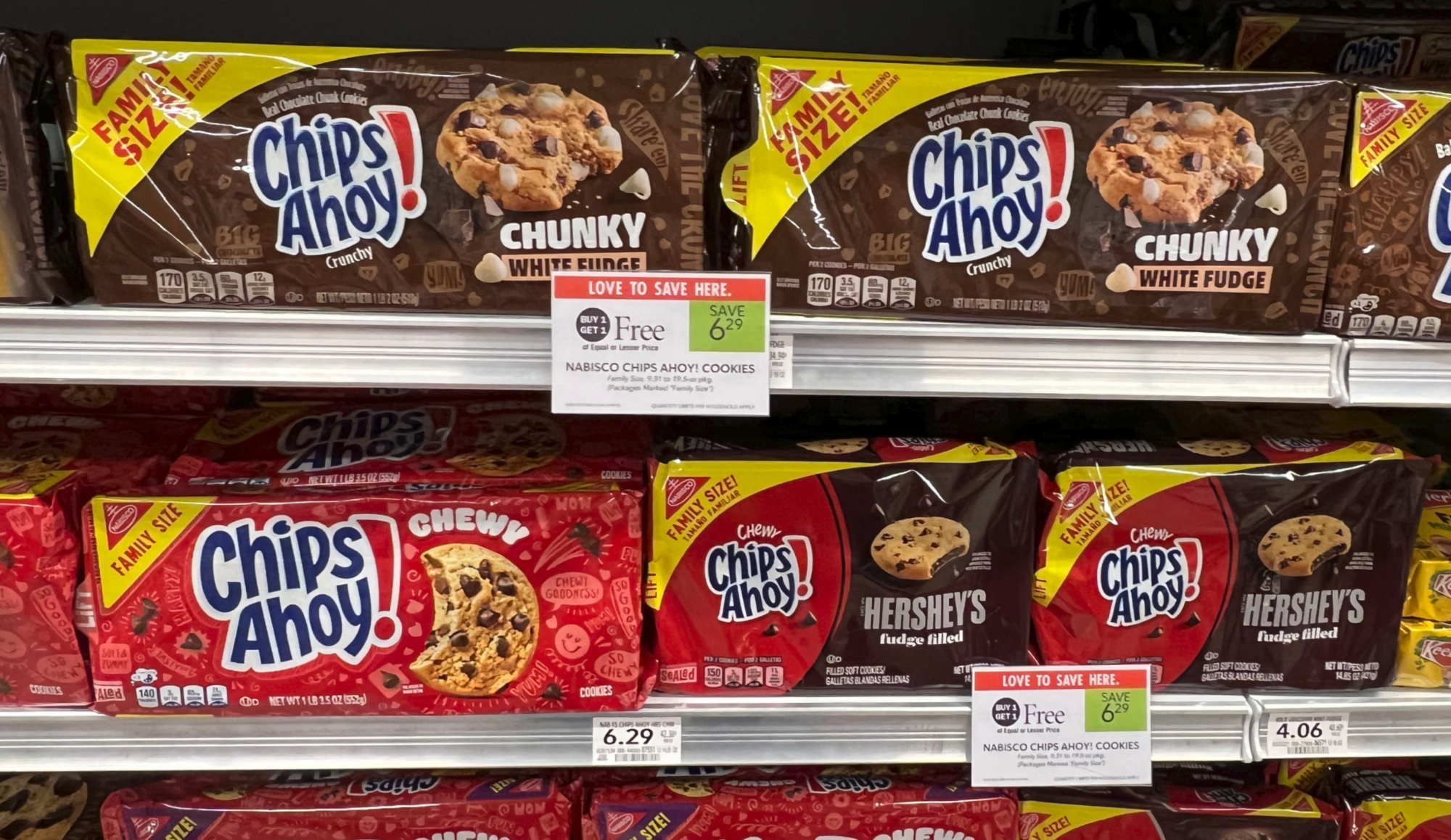 Nabisco Chips Ahoy!, Family Size, 8 to 19.5 oz, BOGO $6.29