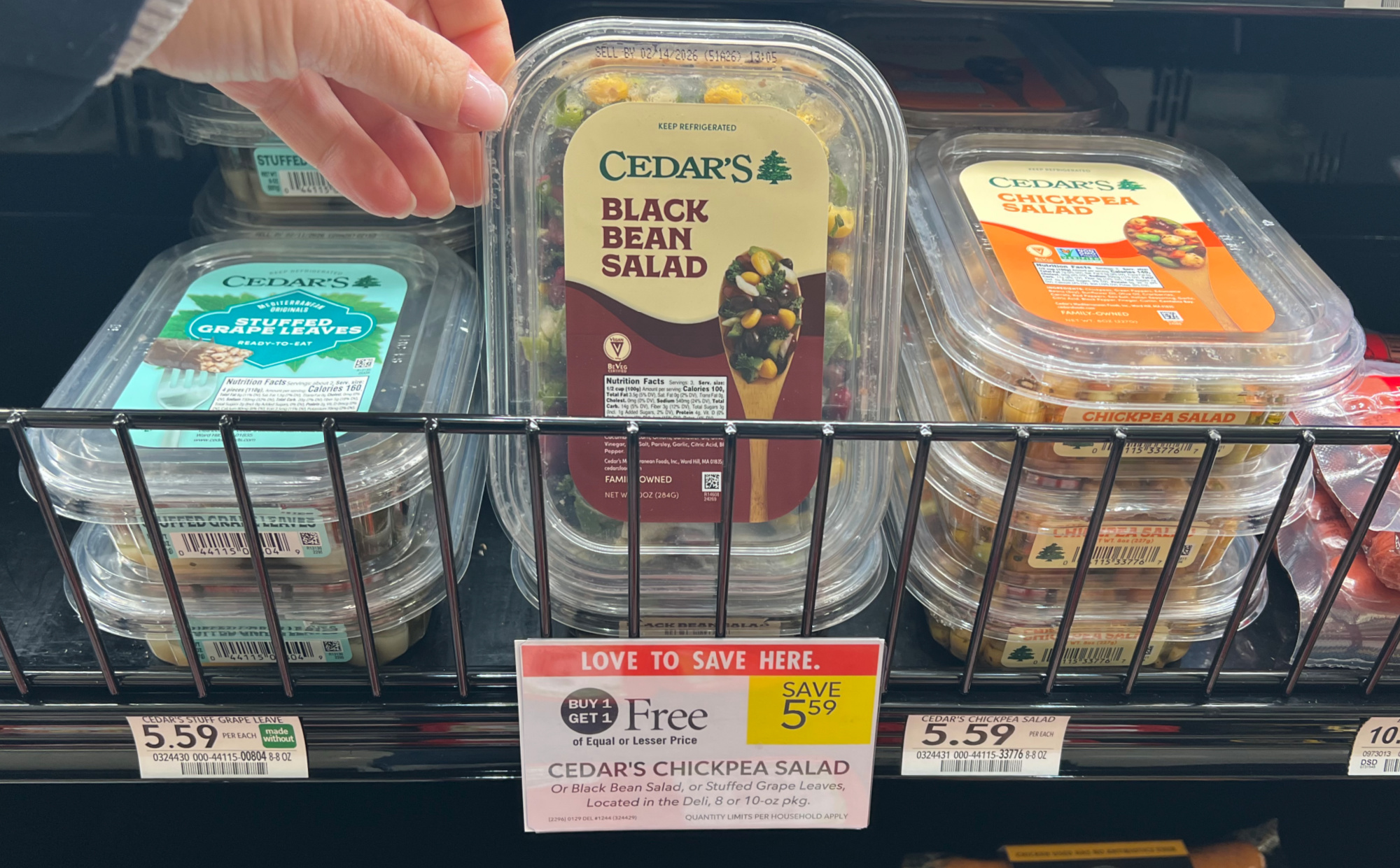 Cedar’s Chickpea Salad, or Black Bean Salad, or Stuffed Grape Leaves, 8 or 10 oz, BOGO $5.59