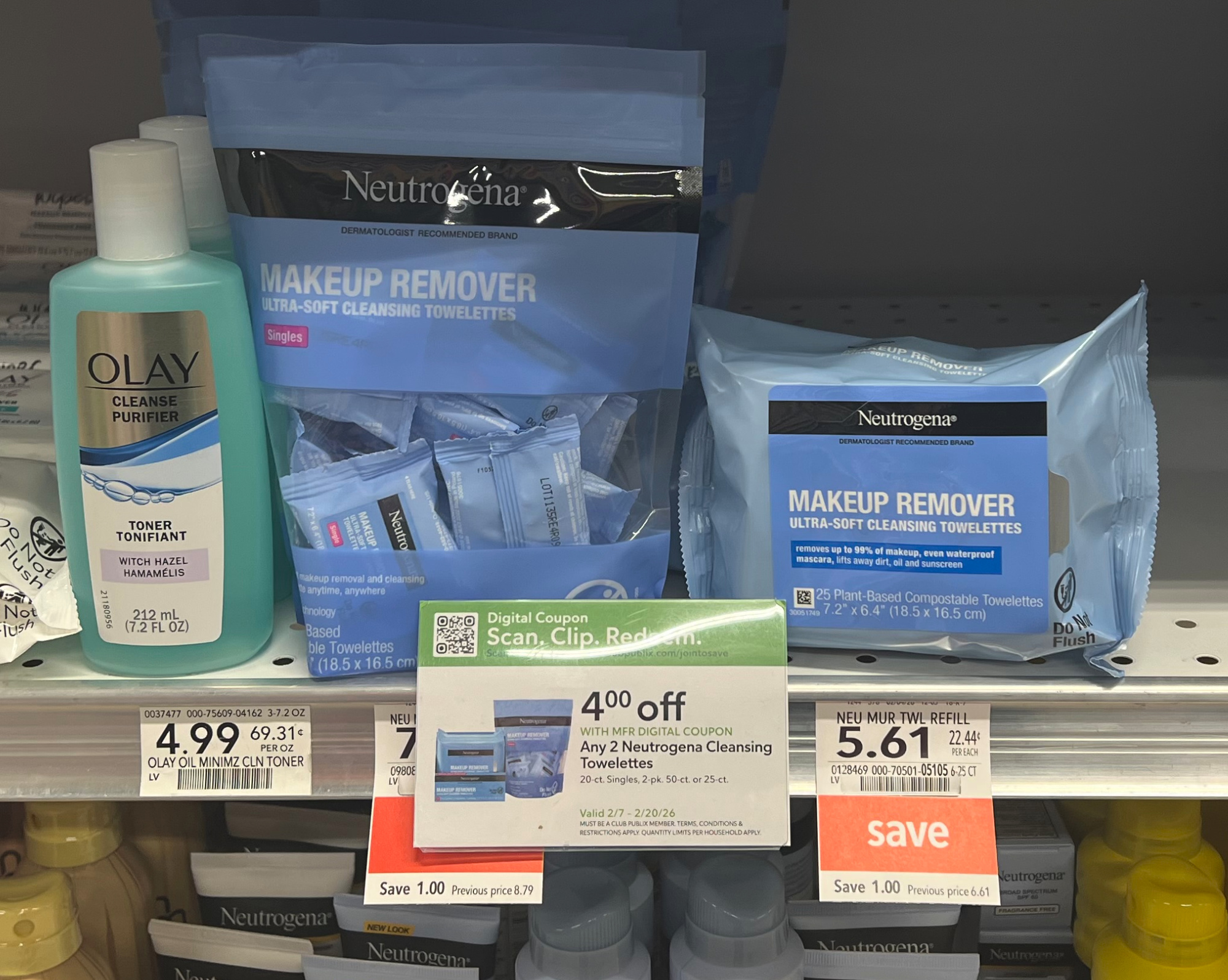 –$4/2 NEUTROGENA Cleansing Wipes 20ct singles OR 25ct and larger (Publix Digital Coupon)