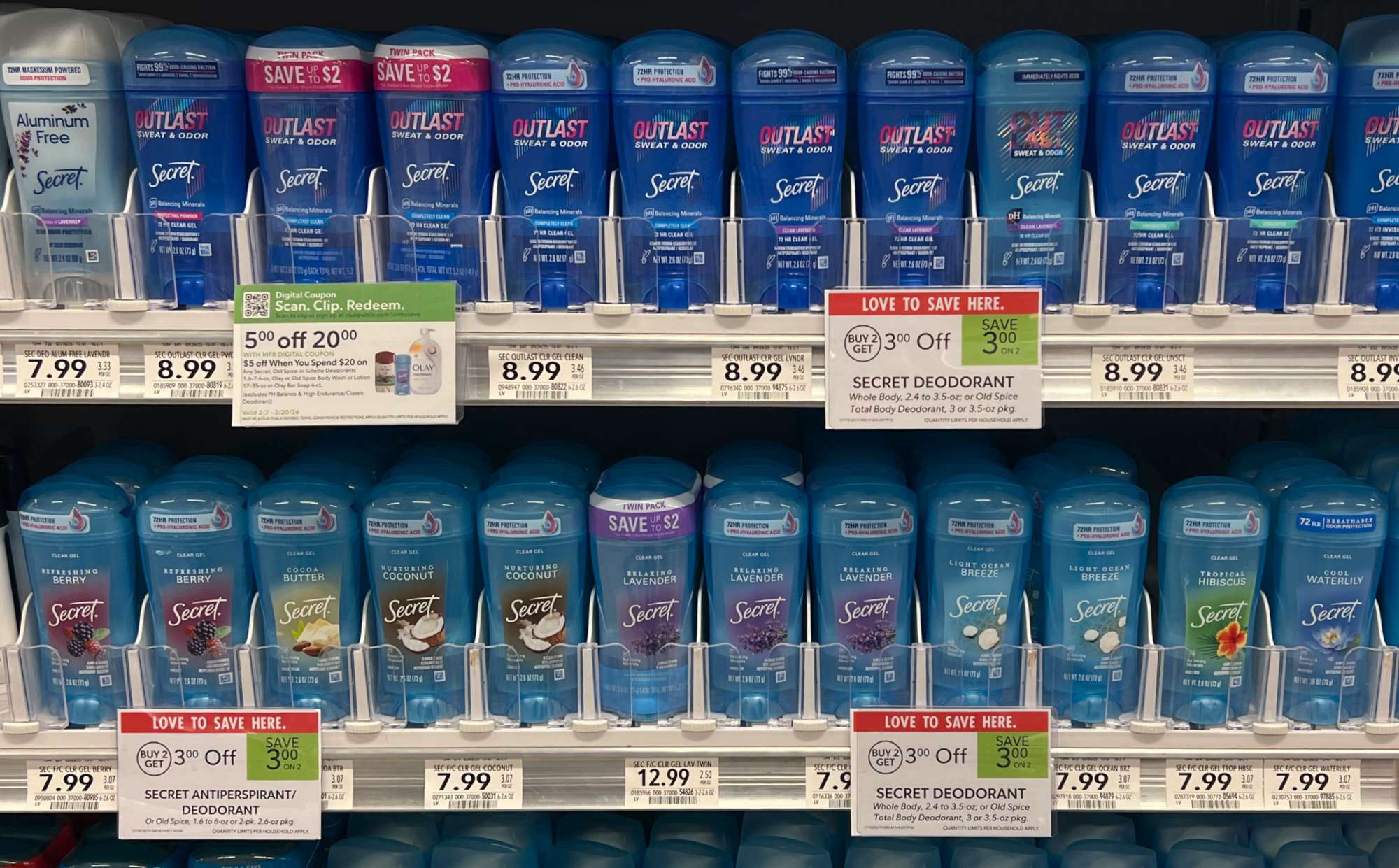 –$1/1 Secret Fresh, Outlast, Aluminum Free, Dry Sprays, Gillette Clear Gel Antiperspirant/Deodorant or Gillette Dry Spray Antiperspirant/Deodorant (excludes trial/travel size) (Publix Digital Coupon)