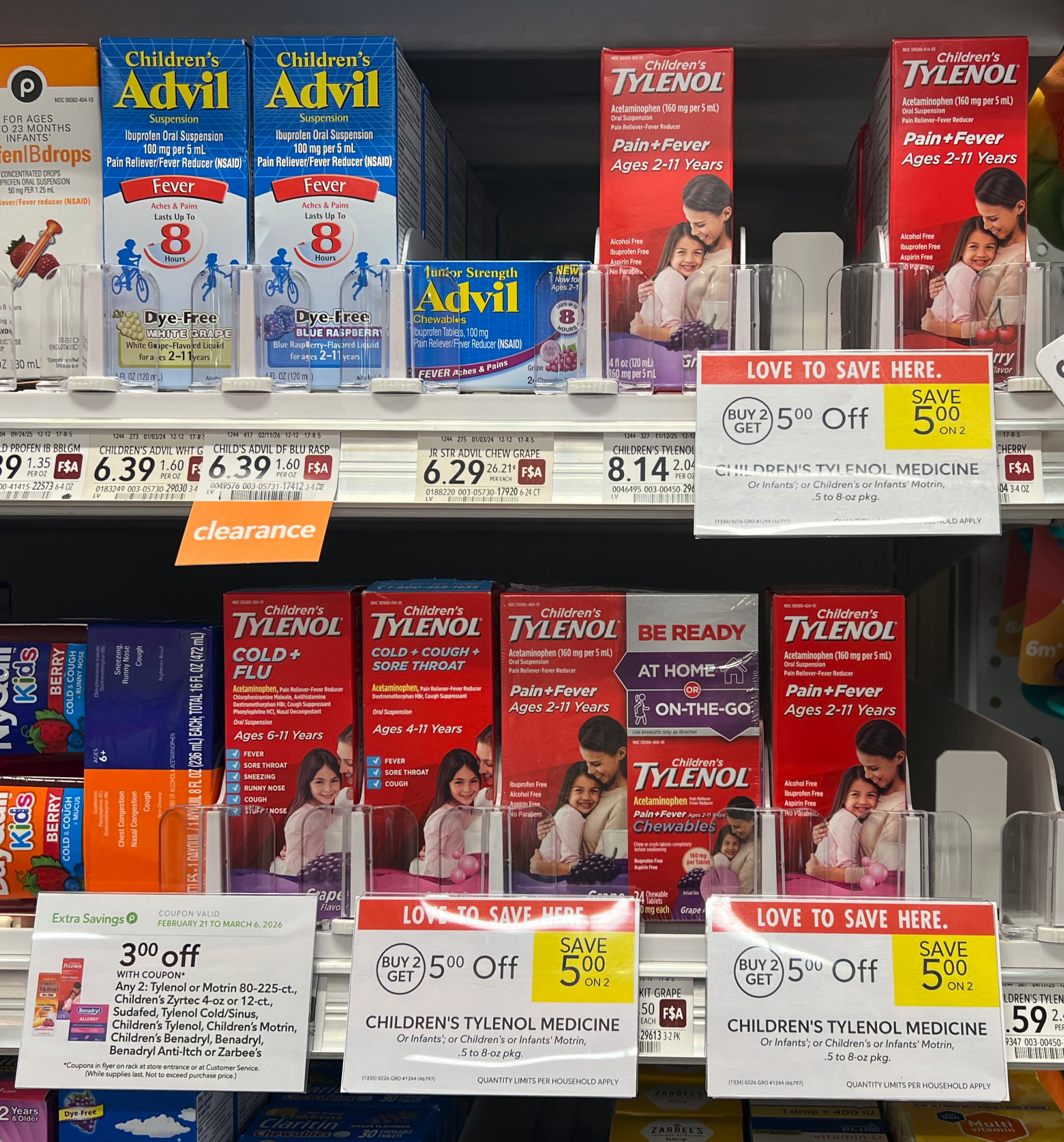 -$3/2 Tylenol, or Motrin, 80 to 225 ct, Children’s Zyrtec, 4 oz, or 12 ct, Sudafed, Tylenol Cold & Sinus, Children’s Tylenol, Children’s Motrin, Children’s Benadryl, Benadryl, Benadryl Anti-Itch, or Zarbee’s, Extra Savings Flyer In-Ad Publix Coupon (valid 2/21 to 3/6)