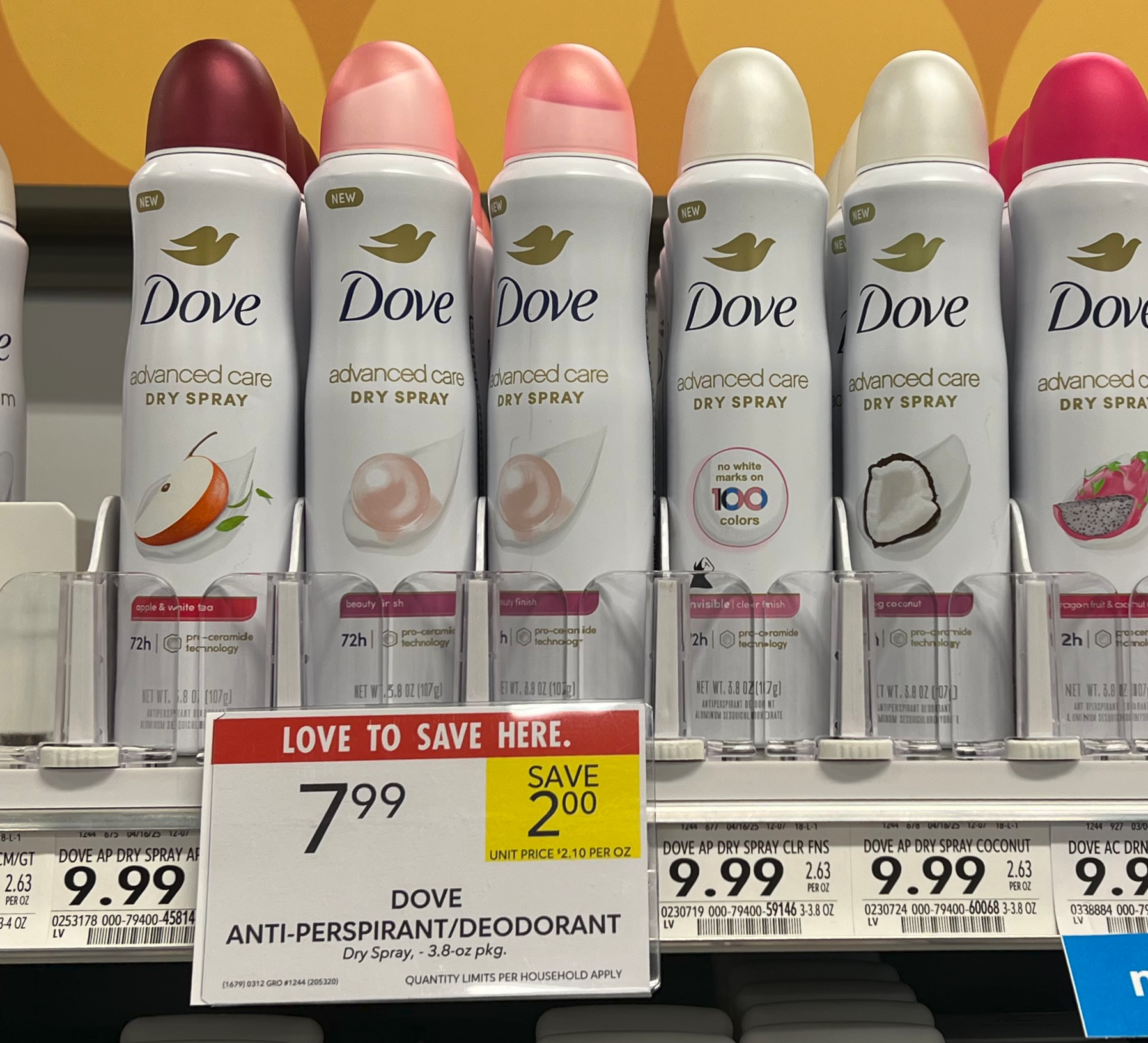 Pick up a nice deal on Dove Dry Spray at Publix. After discounts, you’ll save $4 making the final price  just $5.99 for a can.