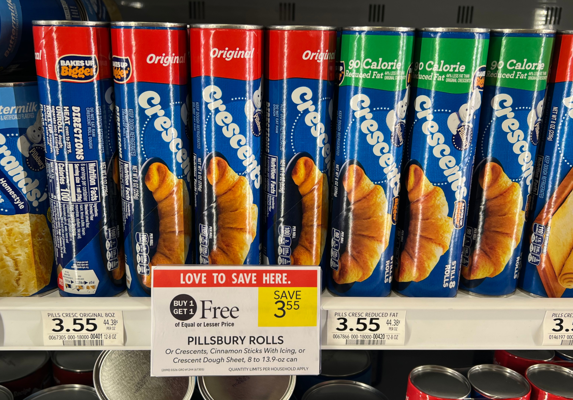 Pillsbury Crescents, or Dough Sheets, 8 oz; or Rolls or Mini Cinni Stix, 11 to 13.9 oz; or Ready to Bake! Cookie Dough, Grands! Biscuits, or Pizza, or Pie Crust, 8 to 16.5 oz, BOGO $3.55 – $5.19