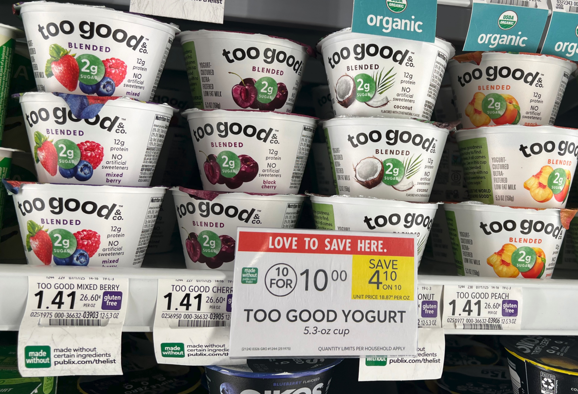 We have a Too Good Greek Lowfat Yogurt cash back offer that goes with the new Publix sale. Pick up your favorite flavors for 55¢ after discounts!