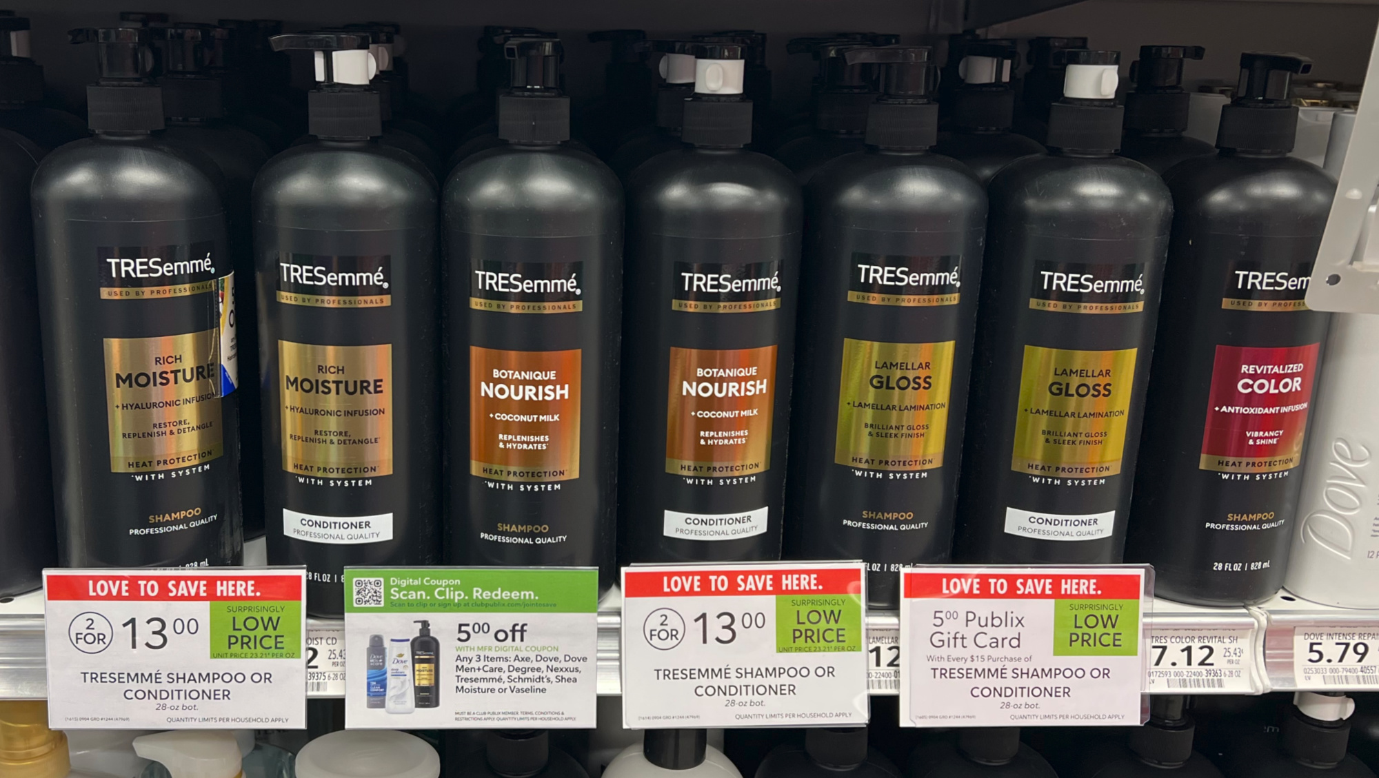 If your preferred brand of hair care is TRESemme, head to Publix this week and take advantage of a nice deal. Use the gift card offer with the sale and coupon to get the bottles for as little as $3.17 each!