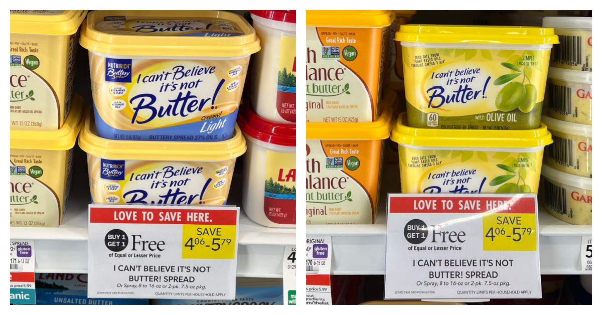 Use that I Can’t Believe It’s Not Butter! digital coupon and cash back offer with the current BOGO sale for score a super discount. Head over to Publix and get a tub as low as 93¢ after coupon.