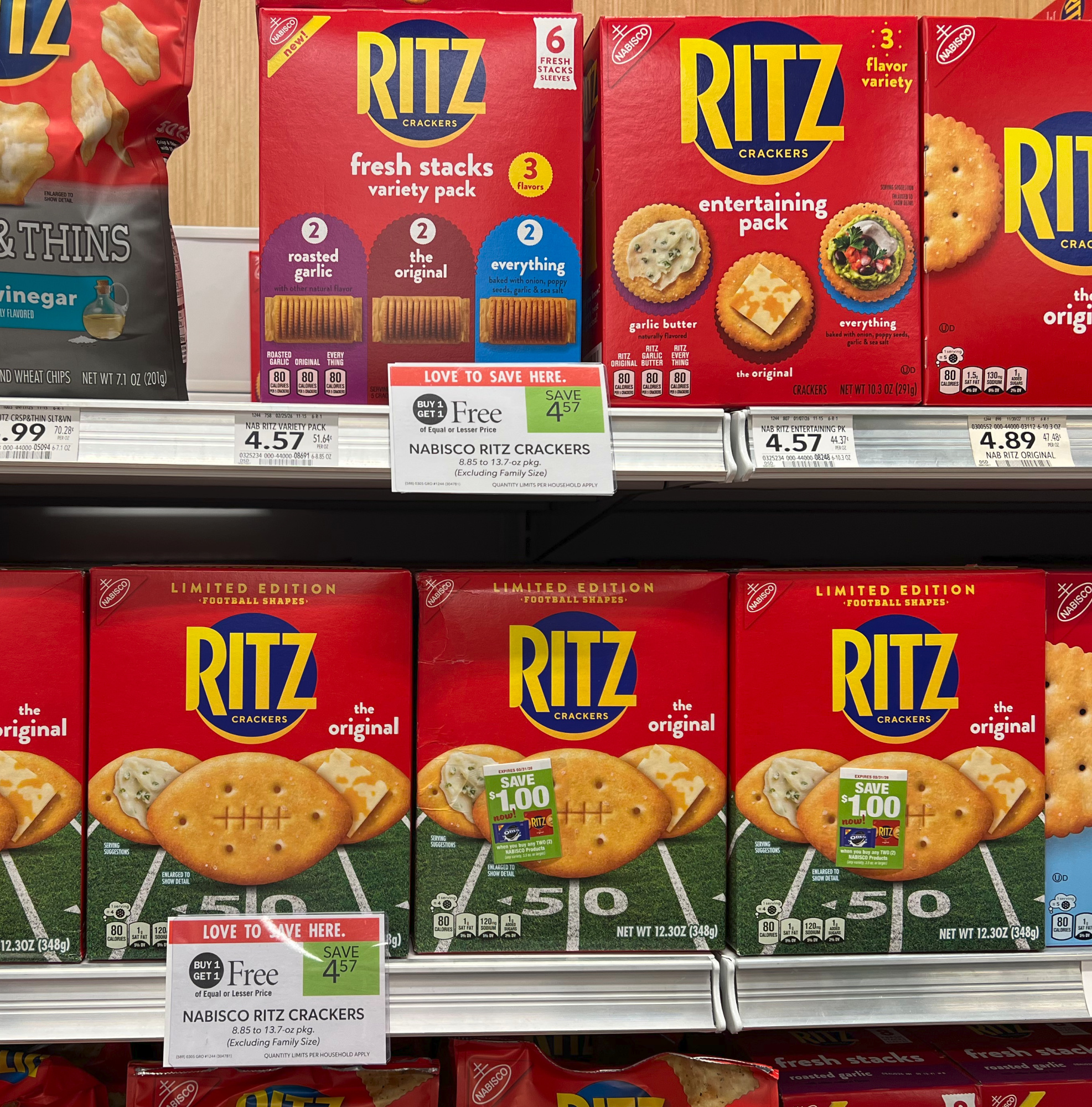 –$1/1 Nabisco Ritz, Triscuit, Wheat Thins, etc (includes Ritz Crackers or Chips 7.1 – 27.4) (Ibotta Deposit) – Limit 5