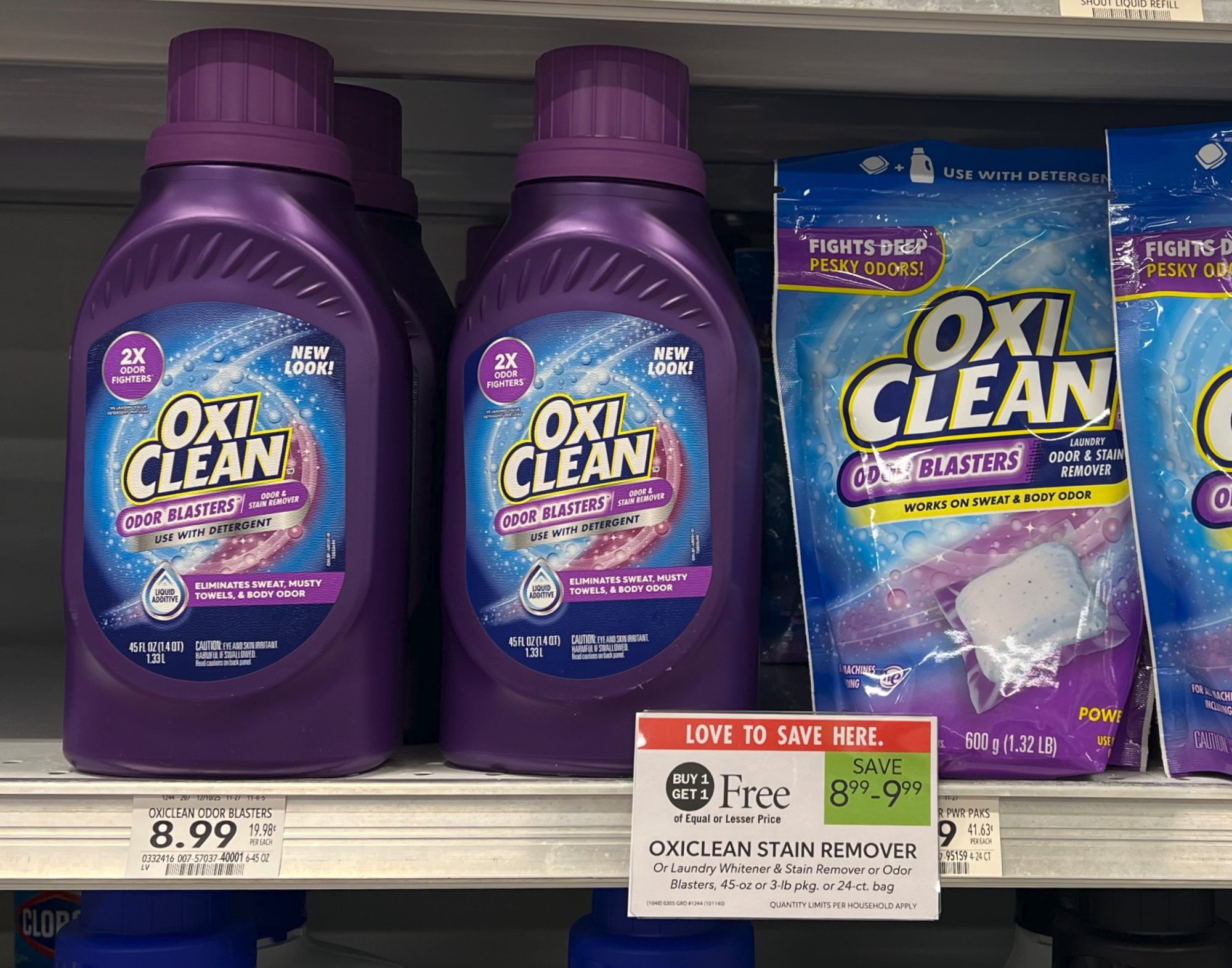 Oxiclean Stain Remover, or Laundry Whitener & Stain Remover, or Odor Blasters, 45 oz, or 3-lb, or 24 ct bag, BOGO $8.99 – $9.99