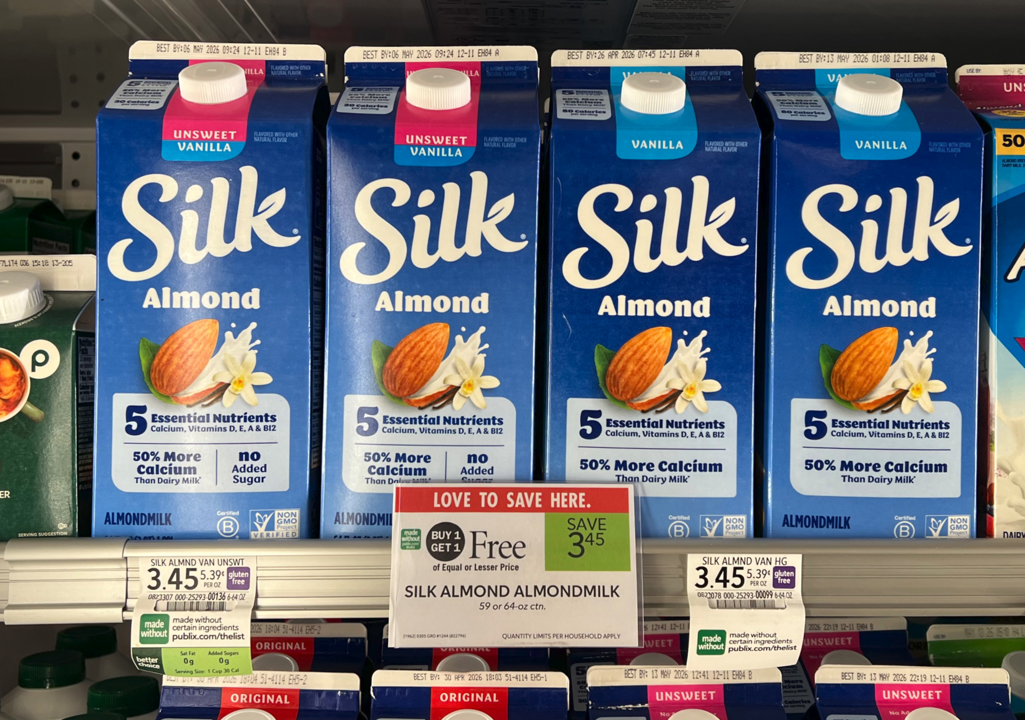 –$1/2 Silk Soy Milk or Almond Milk (64 oz. or 96 oz) (Publix Digital Coupon)