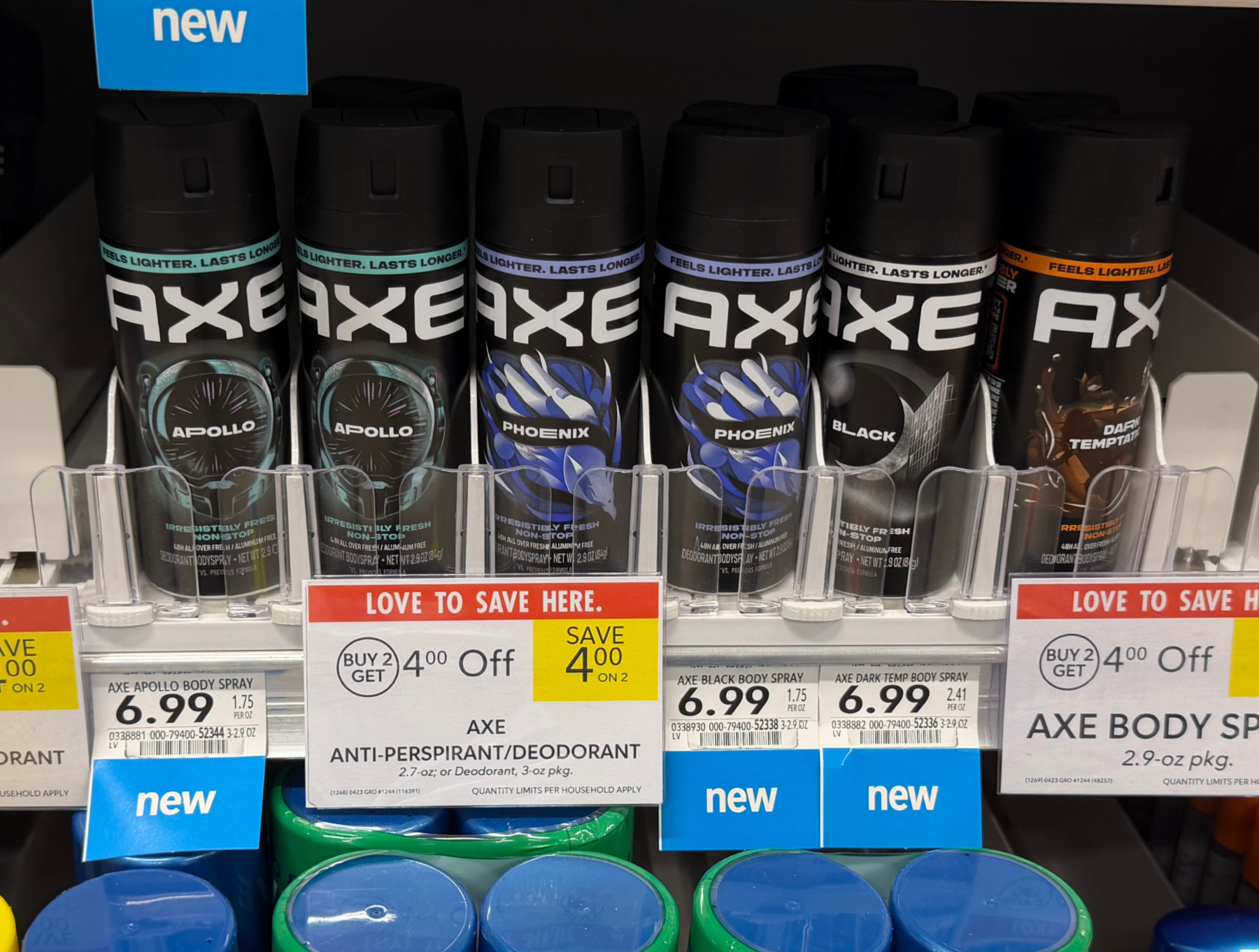 –$5/2 AXE Body Sprays or Sticks (excludes twin packs, trial and travel sizes) Publix Digital Coupon