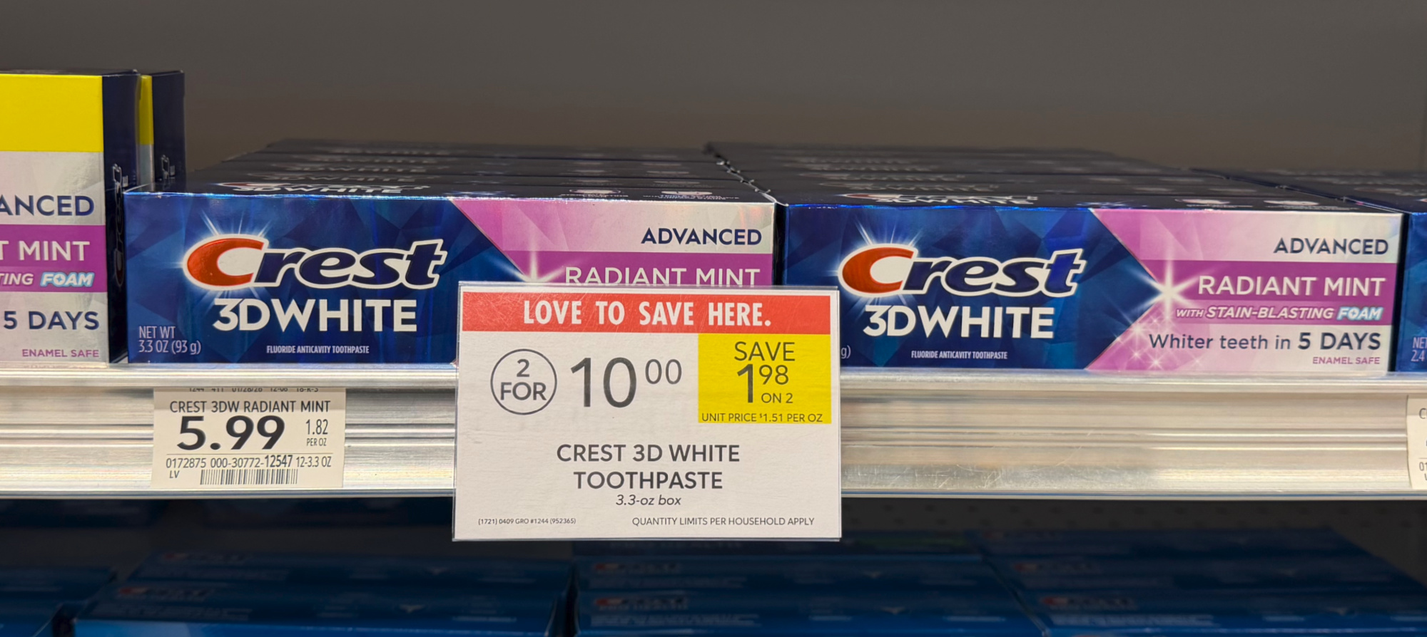 Crest 3D White Toothpaste, 3.3 oz, or Premium Plus, 7 oz box, 2/$10 (reg $5.99)