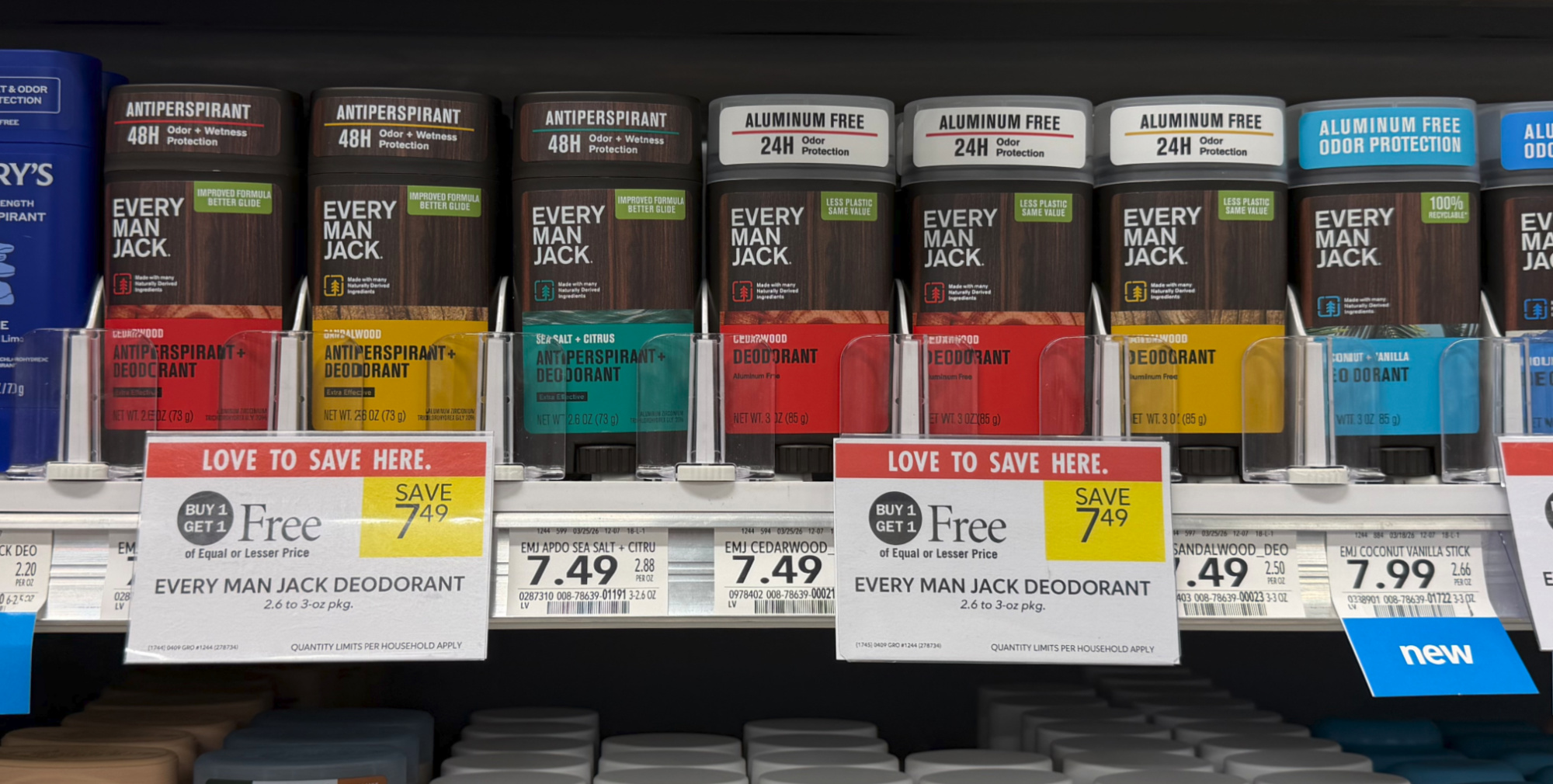 You can get a nice deal on Every Man Jack products for the guys with the current Publix sale and coupon. Pay as little as $3.50 for your favorite deodorant variety. Plus, look for deals on body wash, hair care and beard products.