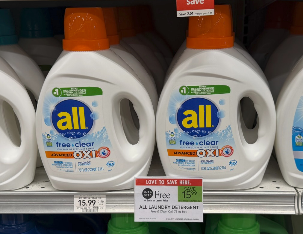All Laundry Detergent, 73 oz, or 32 or 39 ct, BOGO $15.99