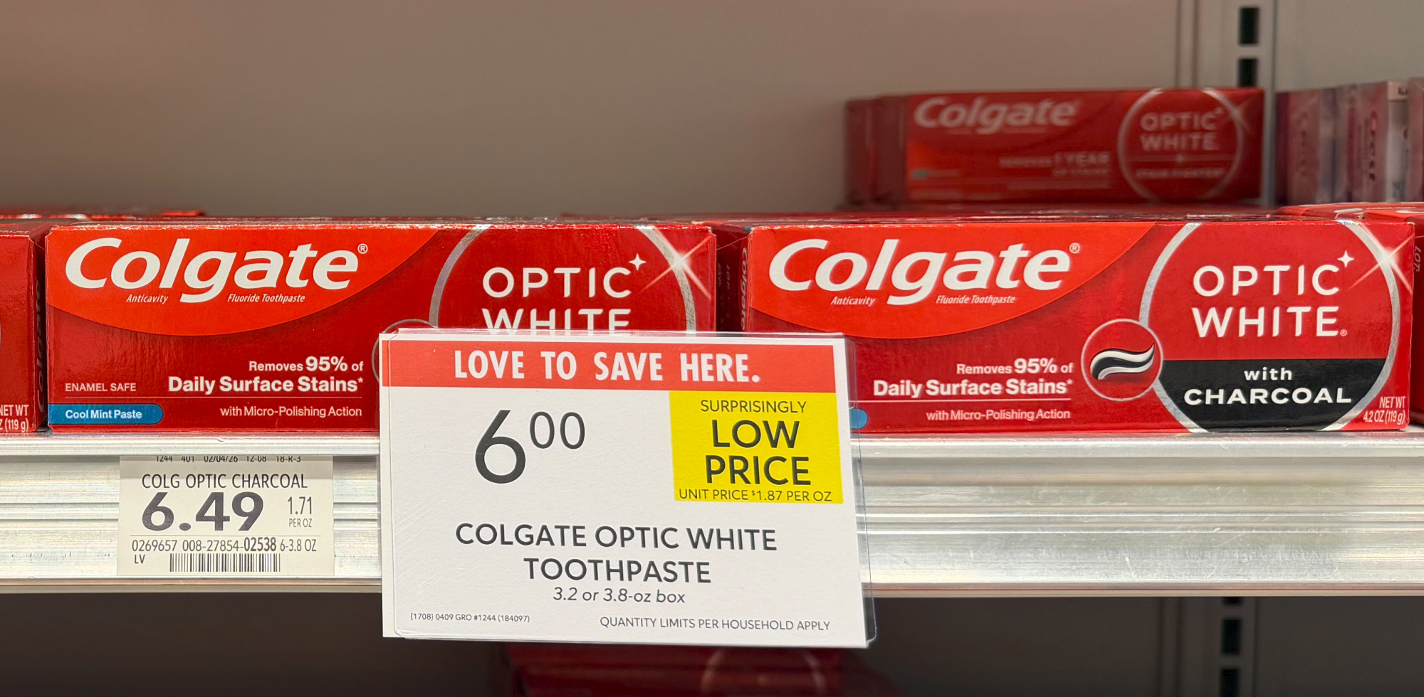 Colgate Optic White Toothpaste, 3.2 or 3.8 oz box, $6 (reg $6.49)