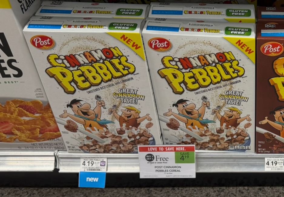 Post Cinnamon Pebbles Cereal, 11 oz box, BOGO $4.19
