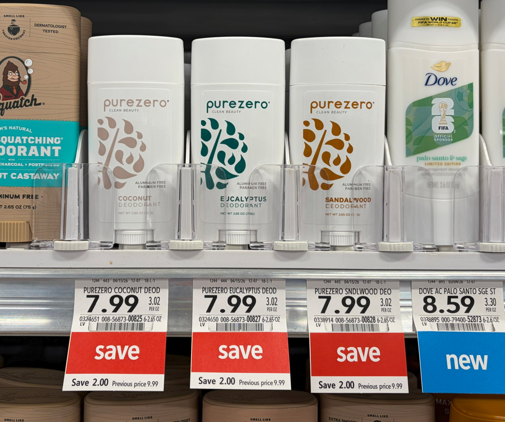 Use the sale and high value cash back offer to get Purezero Deodorant for a nice price. You pay as little as $2.99 at Publix.
