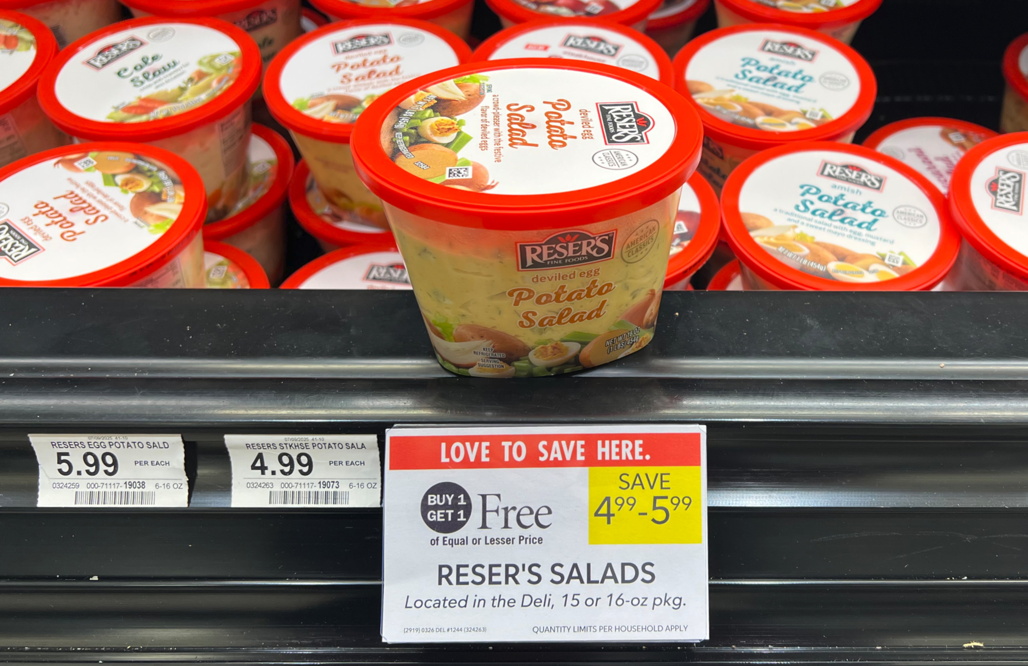 Reser’s Salads, 15 or 16 oz, BOGO $4.99 – $5.99