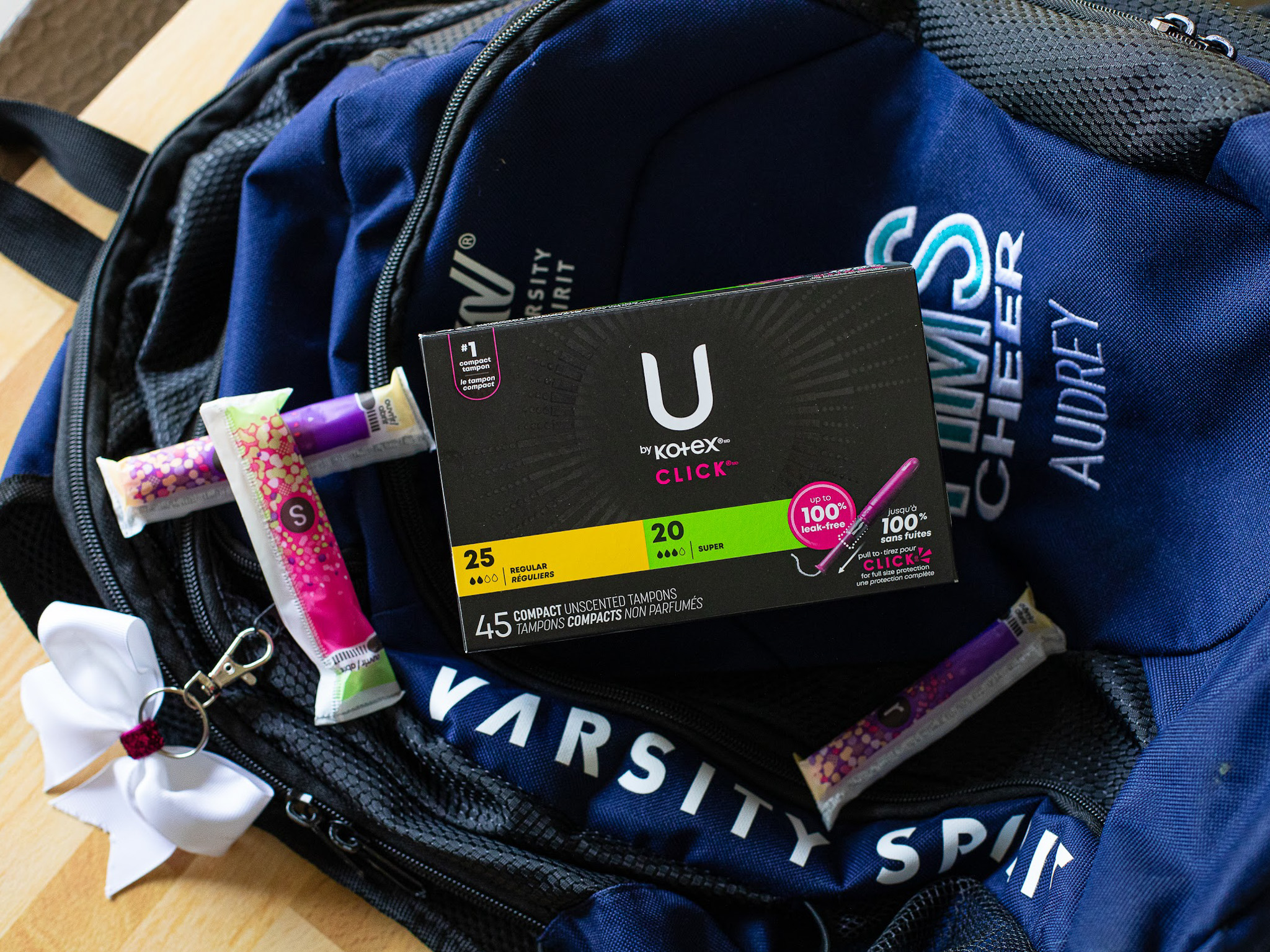 U by Kotex tampons are compact in design for ease on the go. Pull until you hear the click to get full-size protection in one simple step. Explore our full line of products below and learn why these tampons are #1 in the compact tampon market.